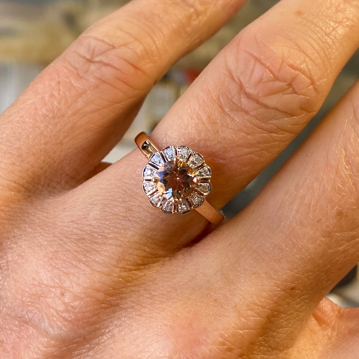 9ct Rose Gold Morganite & Diamond Ring
