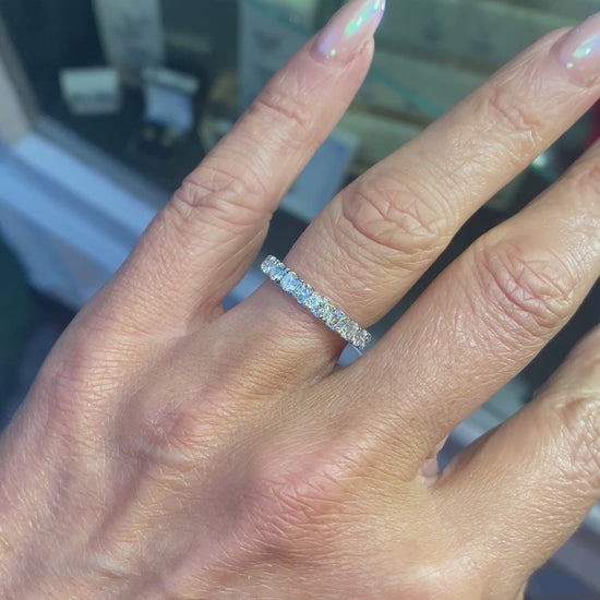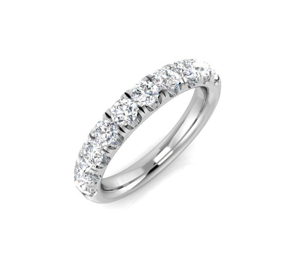 9ct White Gold eternity or wedding ring set with ten 3.00mm round brilliant cut Lab Grown diamonds. Half set shank. 1.03ct in total, FVS.