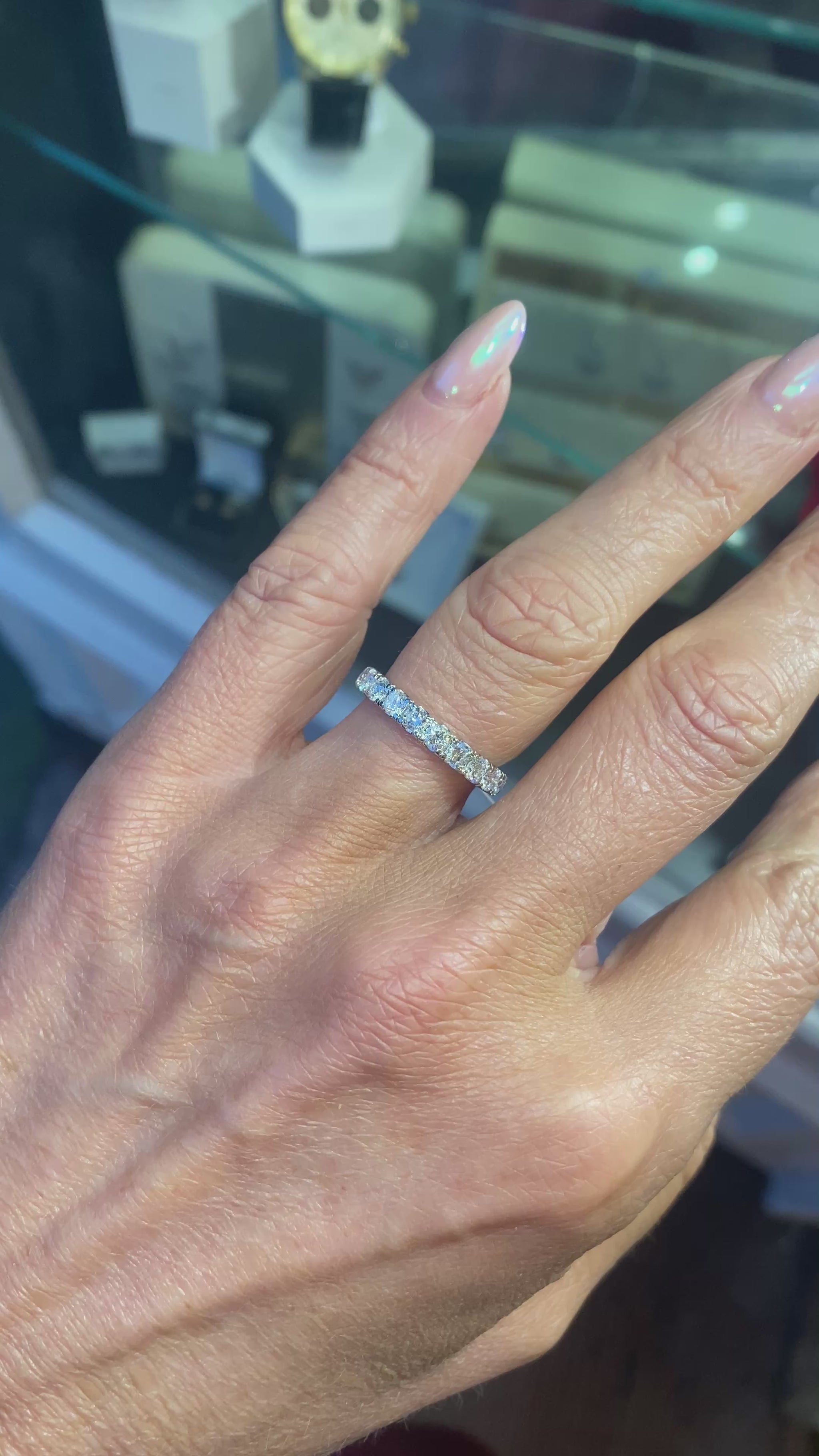 This ring is suitable as a wedding band or eternity ring.
