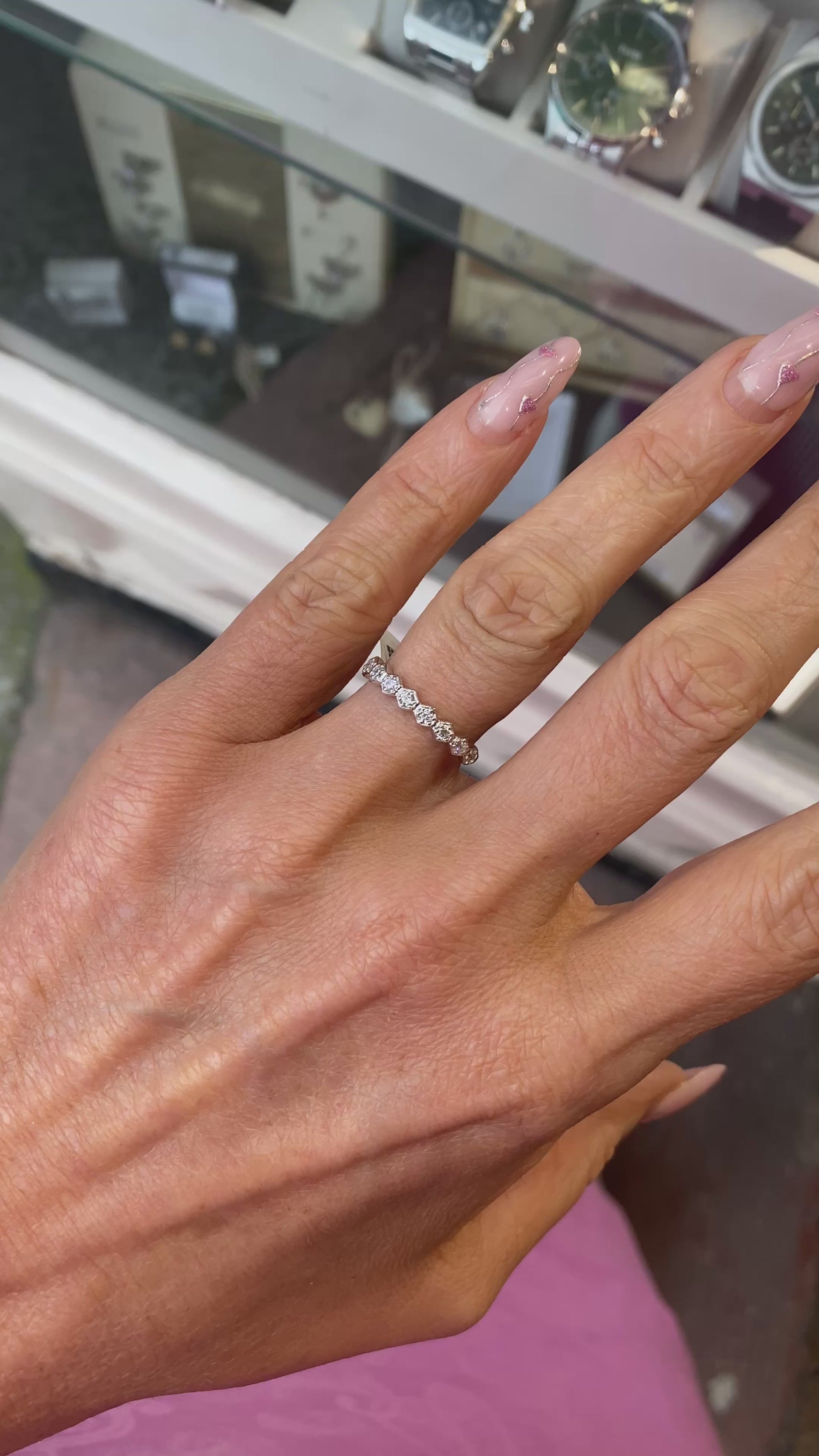9ct White Gold Hexagons Eternity Ring - CZ