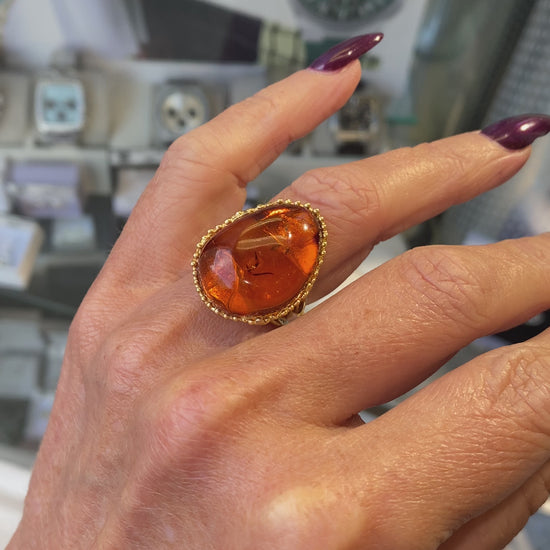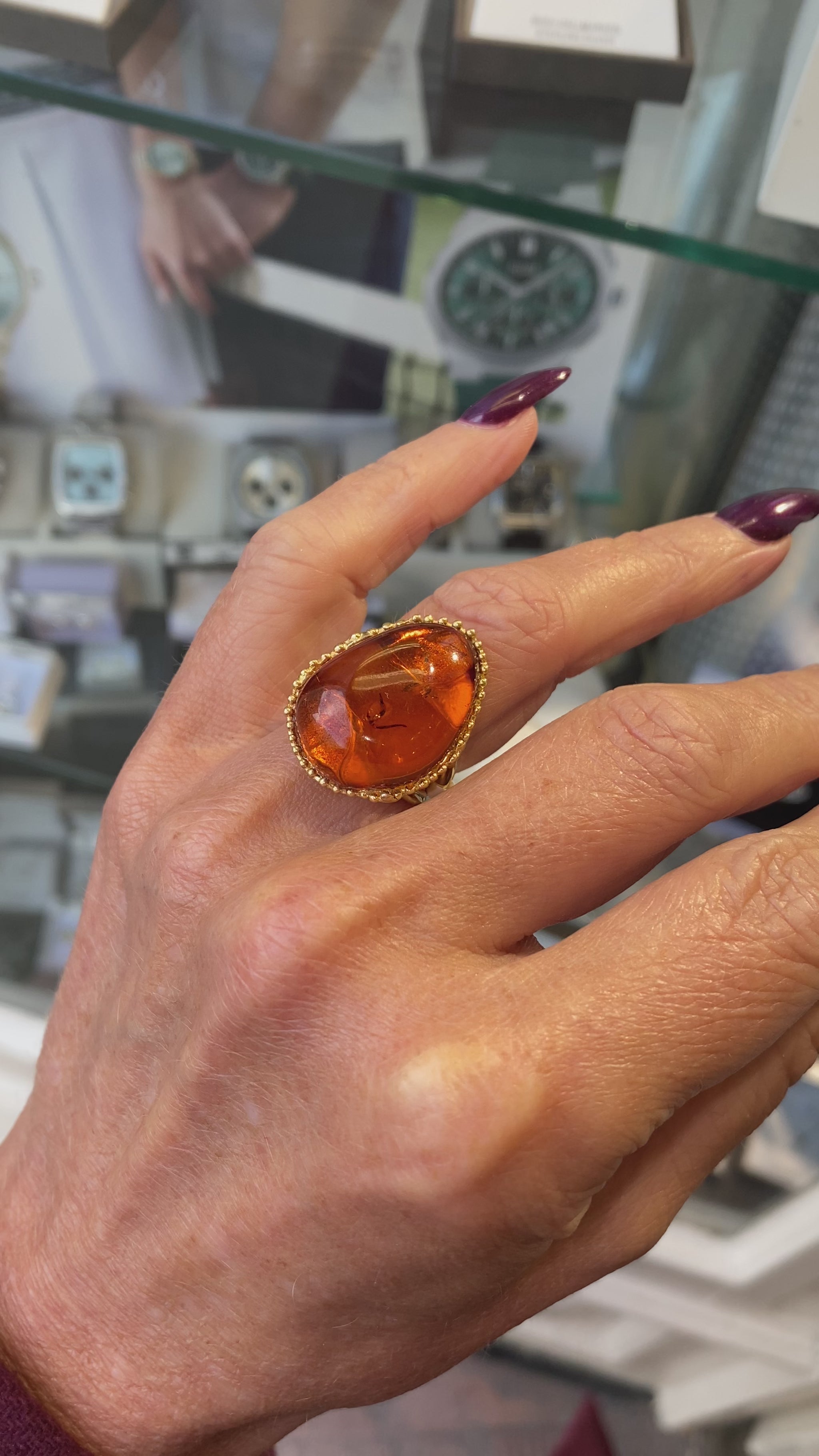 925 Silver Gold Plated Natural Amber Ring. Handmade in Italy. Adjustable to fit your finger. Medium to large.