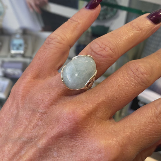 925 Silver Aquamarine Ring. Handmade in Italy. Adjustable to fit your finger. Small to medium.