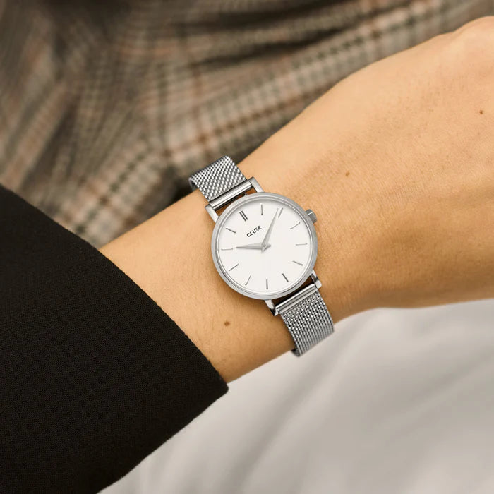 Small size, big dreams. With its refined 28 mm case, our Boho Chic Petite collection is your perfect companion if you prefer a smaller, understated timepiece. Featuring a matte white dial and silver coloured case & strap, you'll always be on-trend with this classic colour combination. A watch built to last thanks to its stainless-steel case and mesh strap.