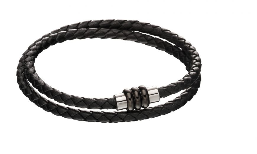 FRED BENNETT Black Plaited Leather Wraparound Wristband with black tube magnetic clasp.