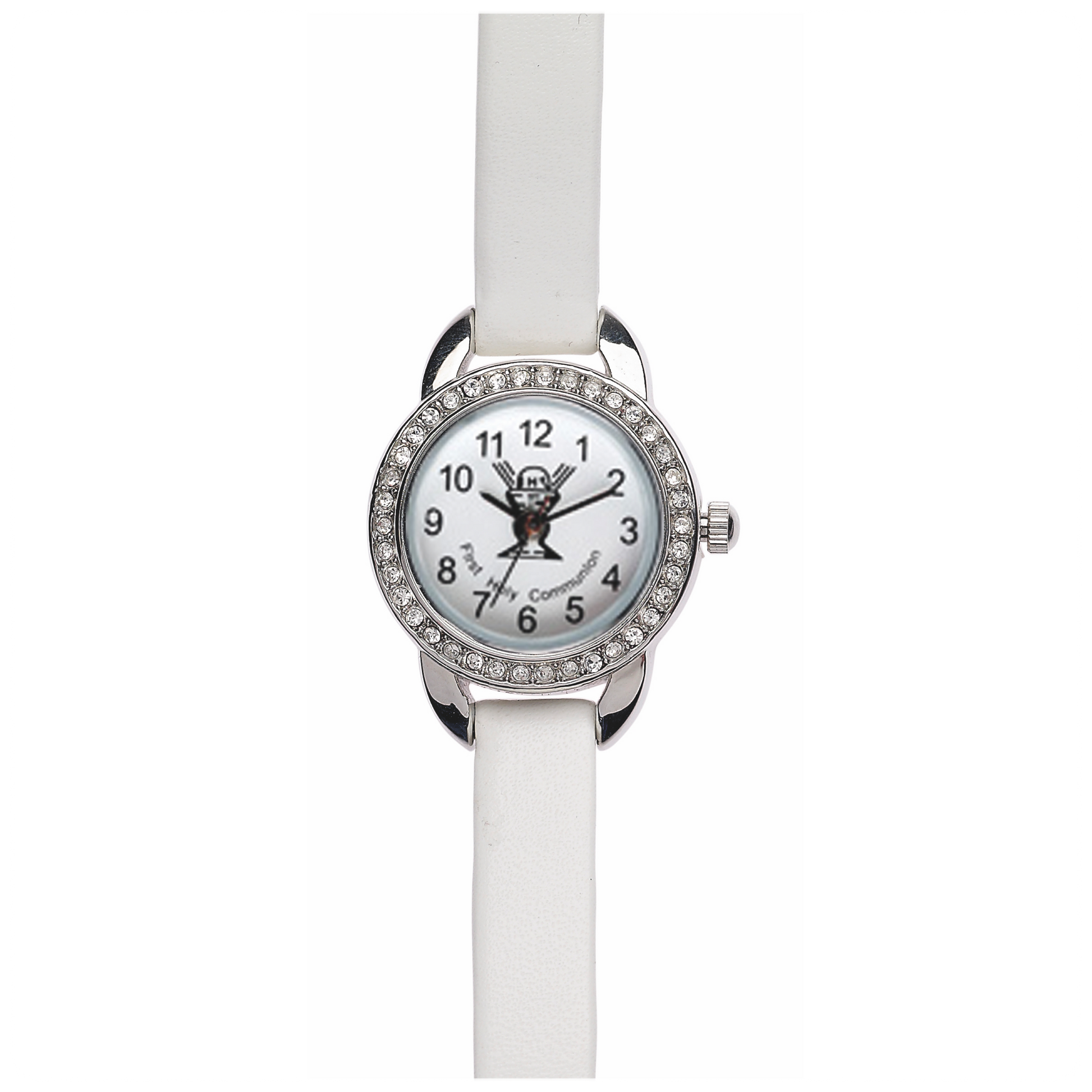 This First Holy Communion watch is super glam with its Mother of Pearl dial, CZ set bezel and snow white strap. It’s the perfect accessory for her special day.