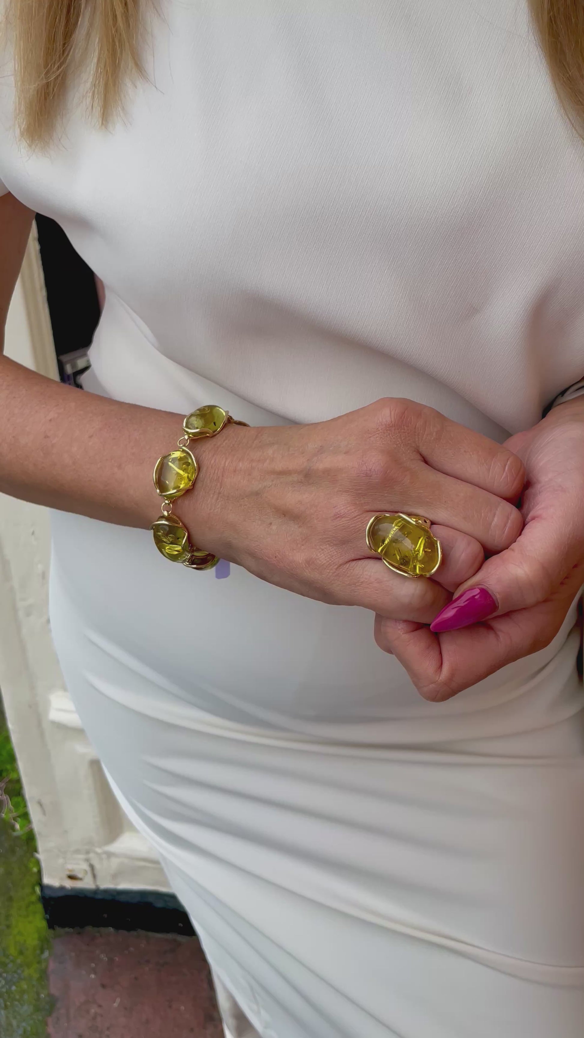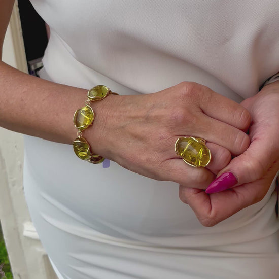 Gold Plated 925 Silver Lime Amber Nugget Bracelet