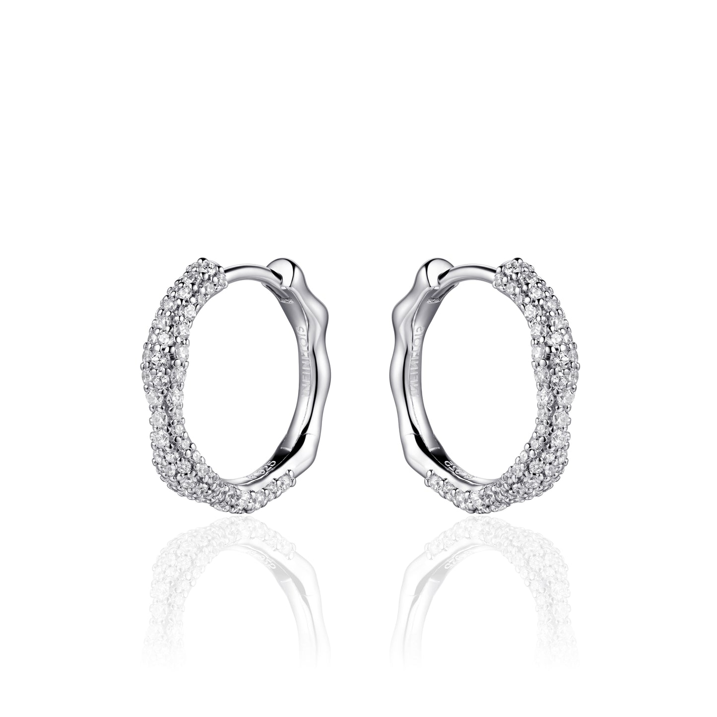 ORGANIC 20mm CZ Hoop Earrings - Silver - Rhodium Plated 925 Silver