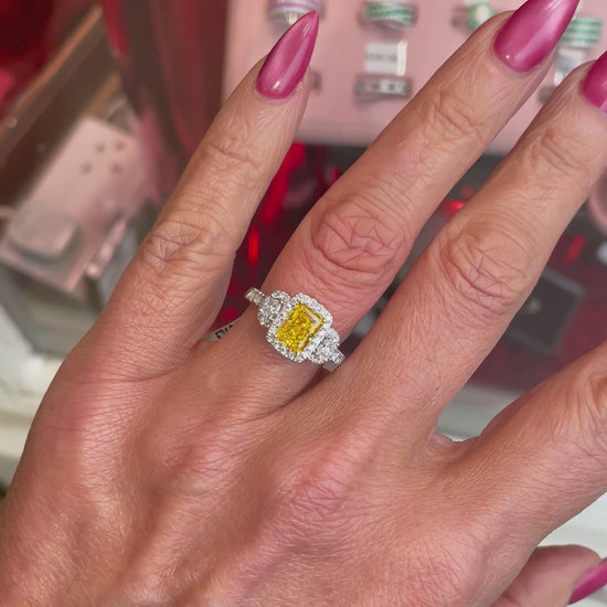 Platinum Trilogy Engagement Ring | Vivid Yellow Certificated Lab