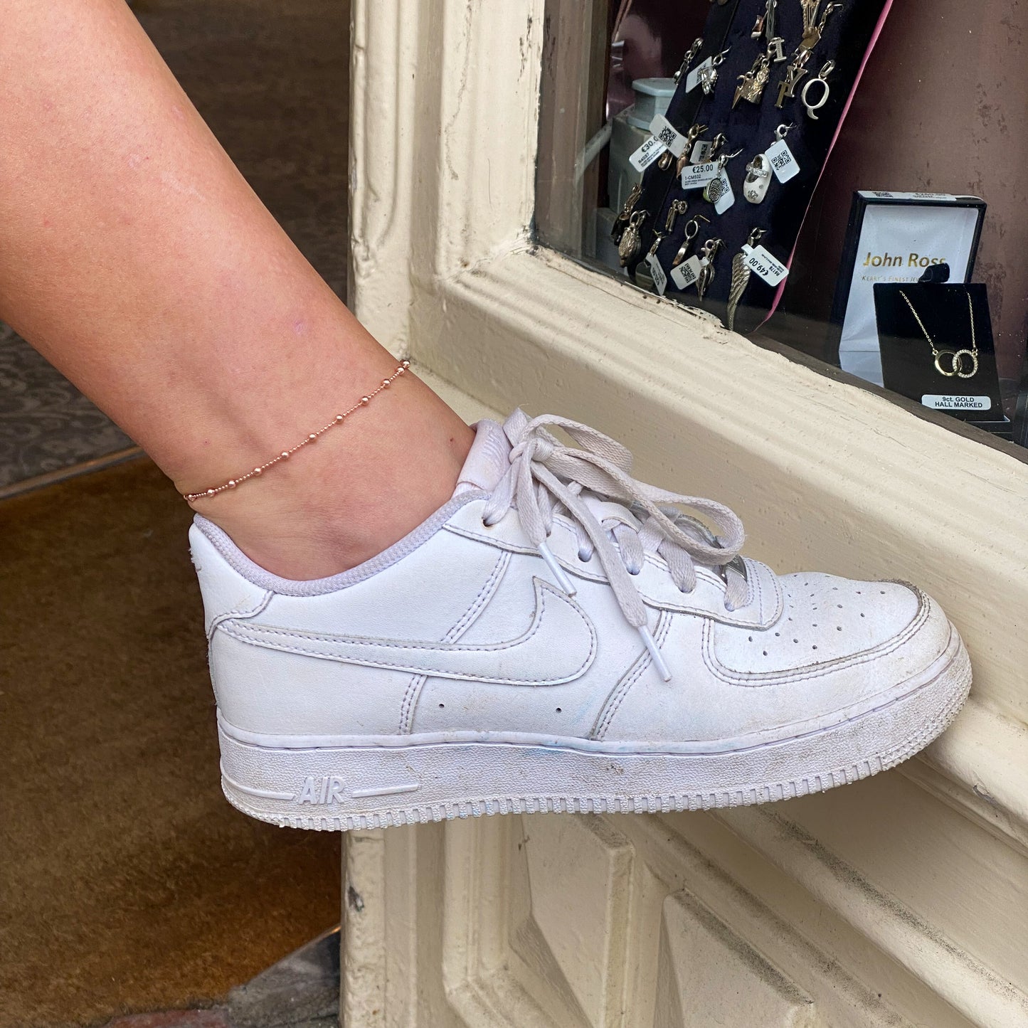 This 925 Silver Rose Gold-plated Bead Chain Anklet is a stunning summer accessory that can be adjusted to fit anyone. It measures 25cm in length.
