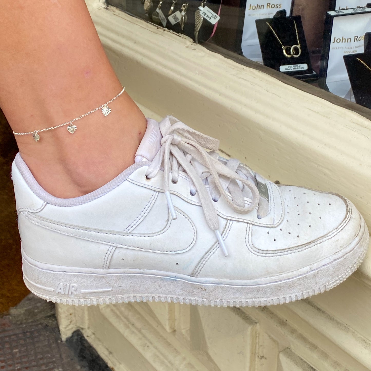 Silver Anklet - Diamond Cut Heart Charms | 22-25cm