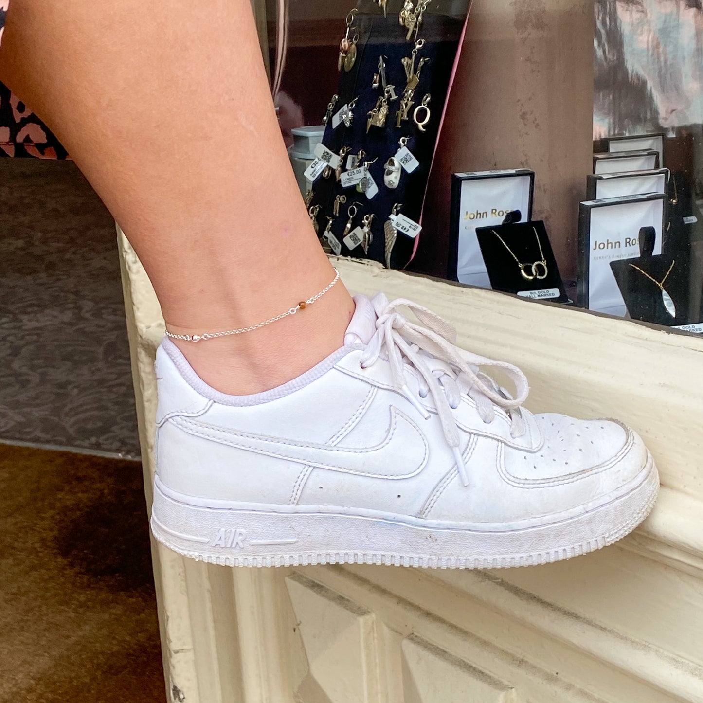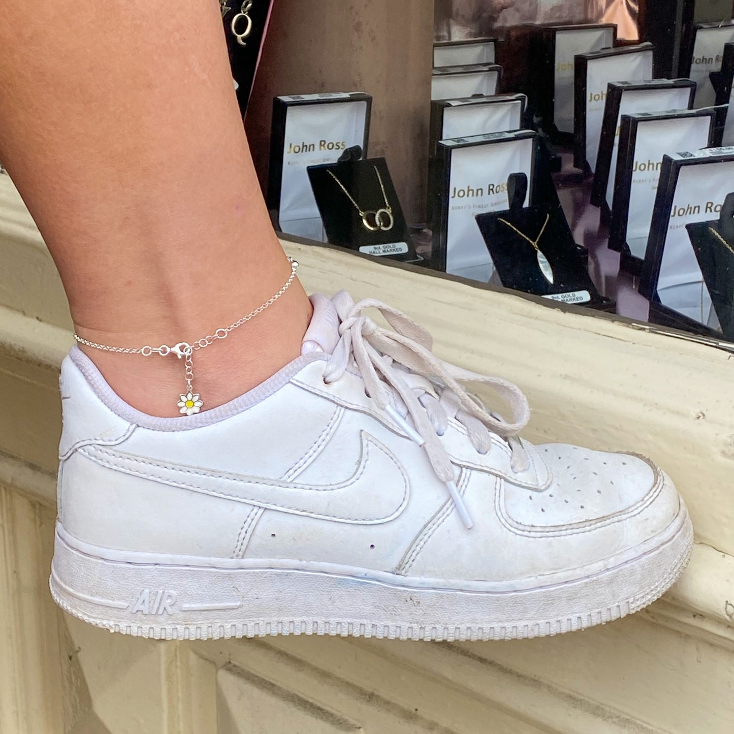 Silver Anklet - Enamelled Daisy Charm | 22.5-25cm