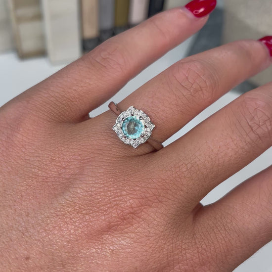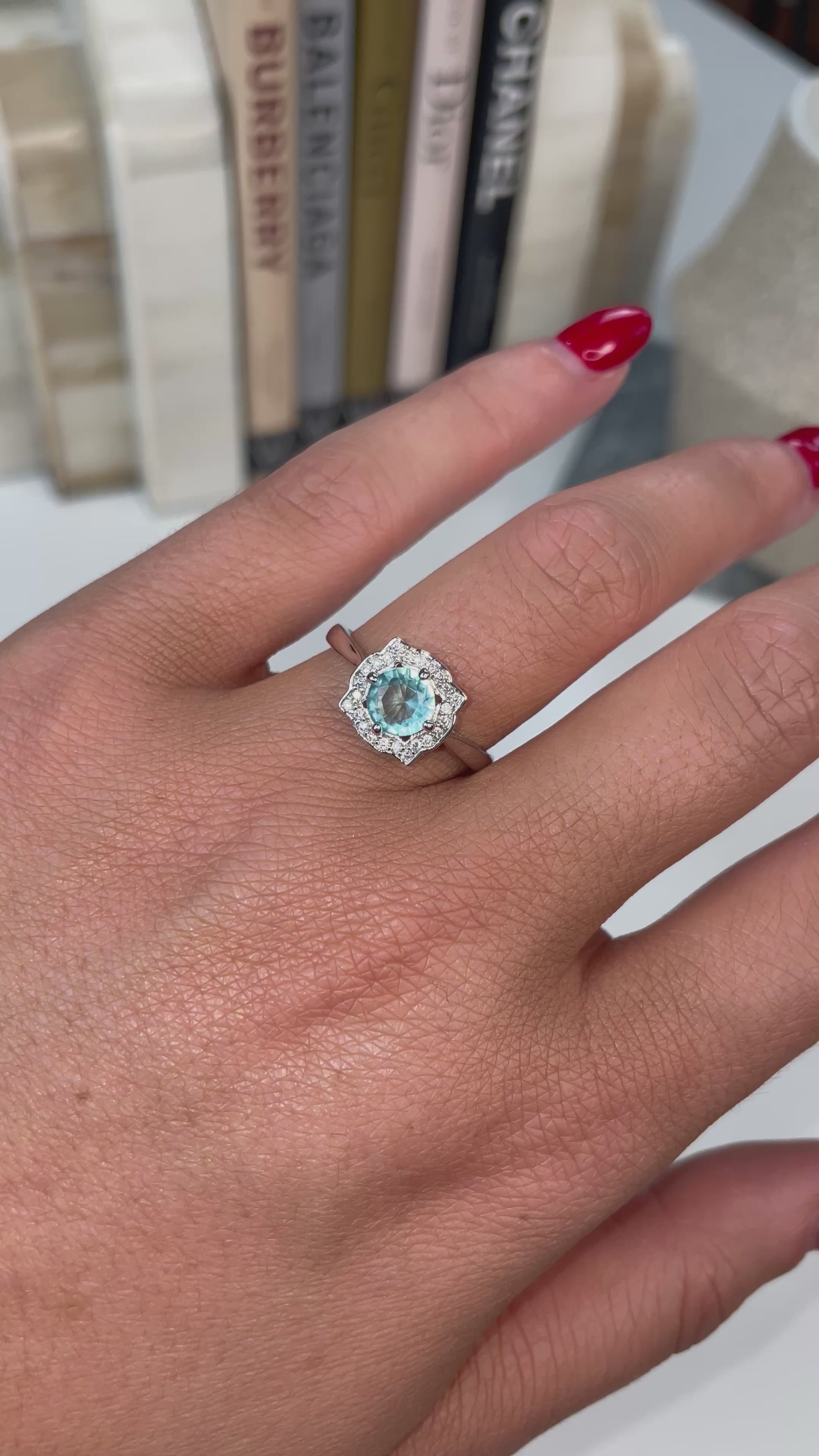 Silver Aqua CZ Vintage Style Cluster Ring | 925 Silver