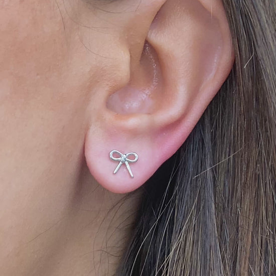 Silver Bow Stud Earrings | 925 Silver | 8mm x 6mm