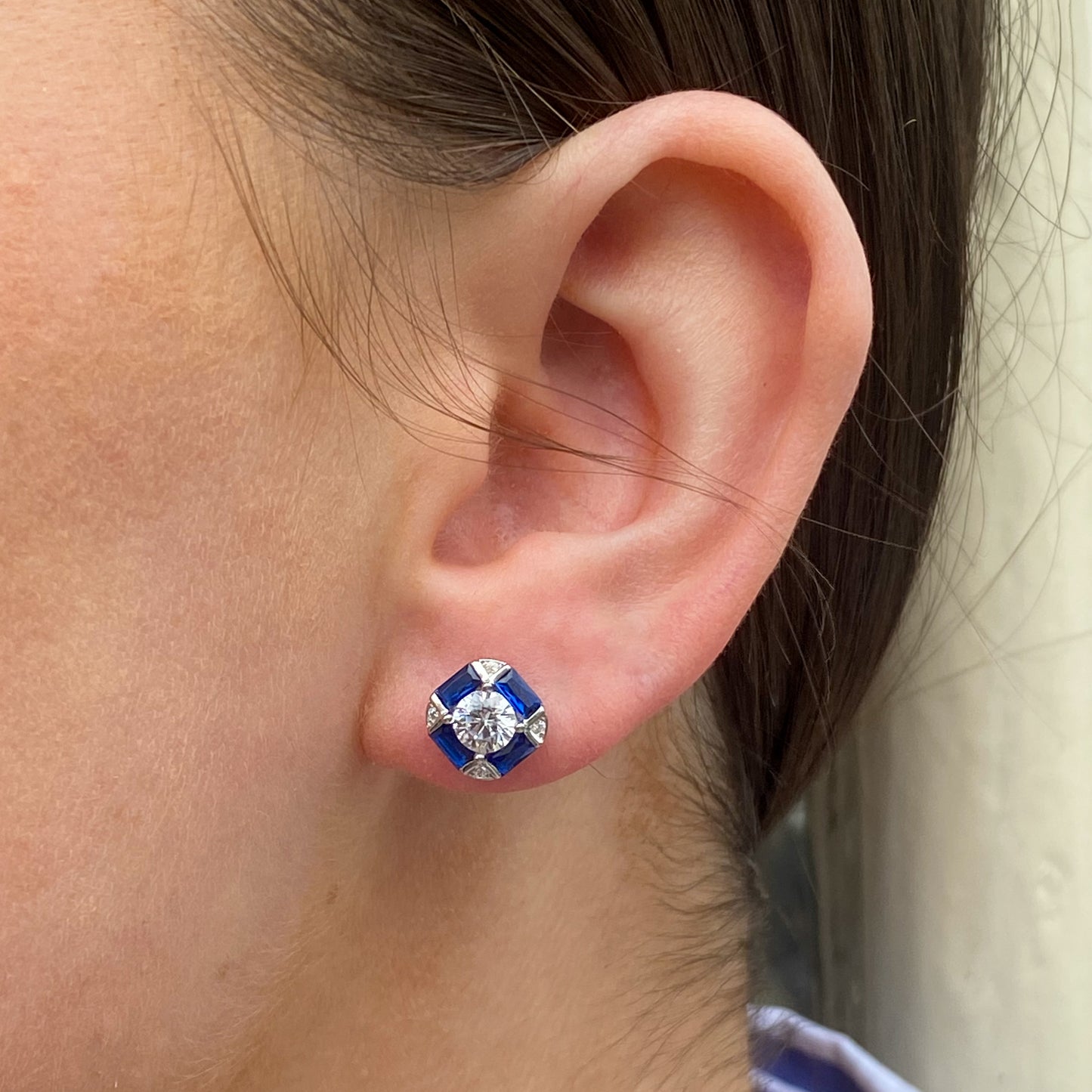 Silver Created Sapphire & CZ Cube Stud Earrings | C Flawless