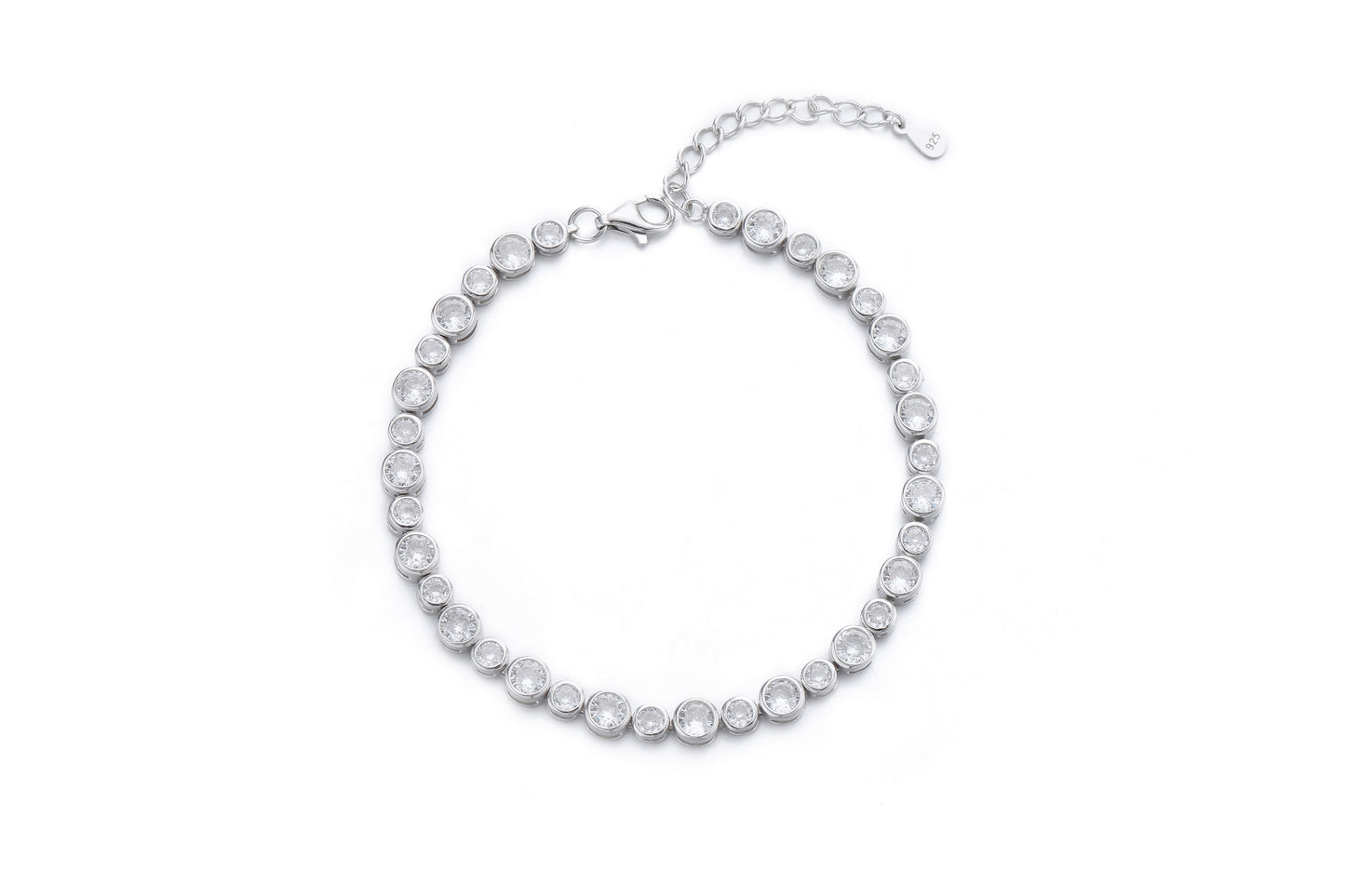 This CZ bezel line bracelet will add a touch of elegance to any outfit.