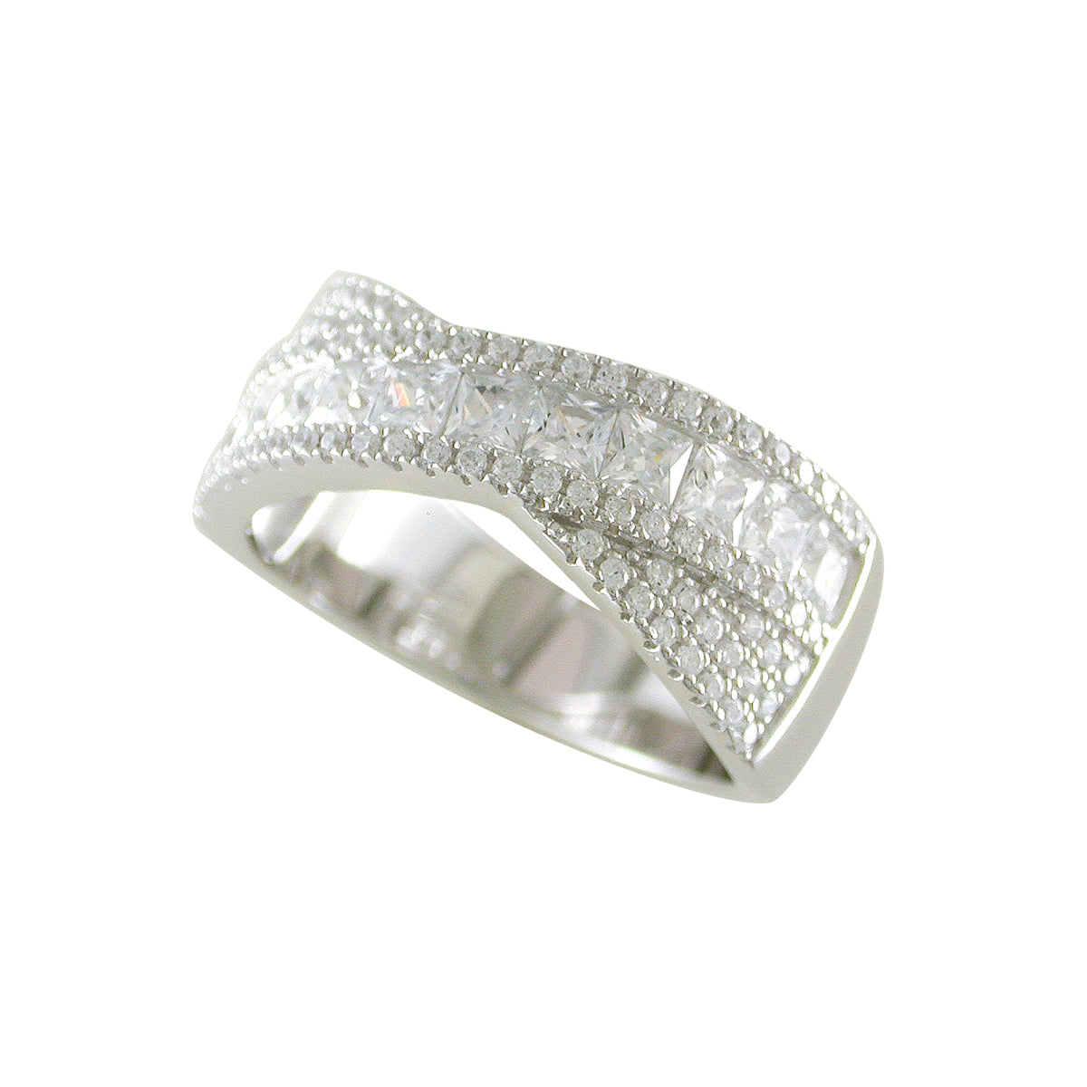 Silver CZ Crossover Band Ring