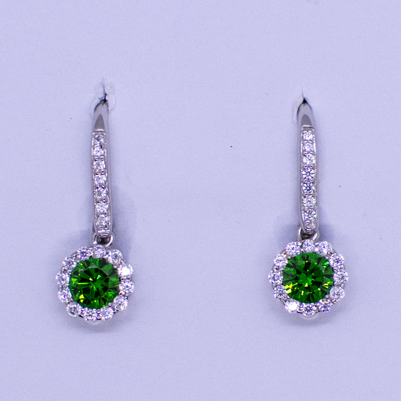 Silver CZ Halo Drop Earrings - Created Tsavorite - German Wires