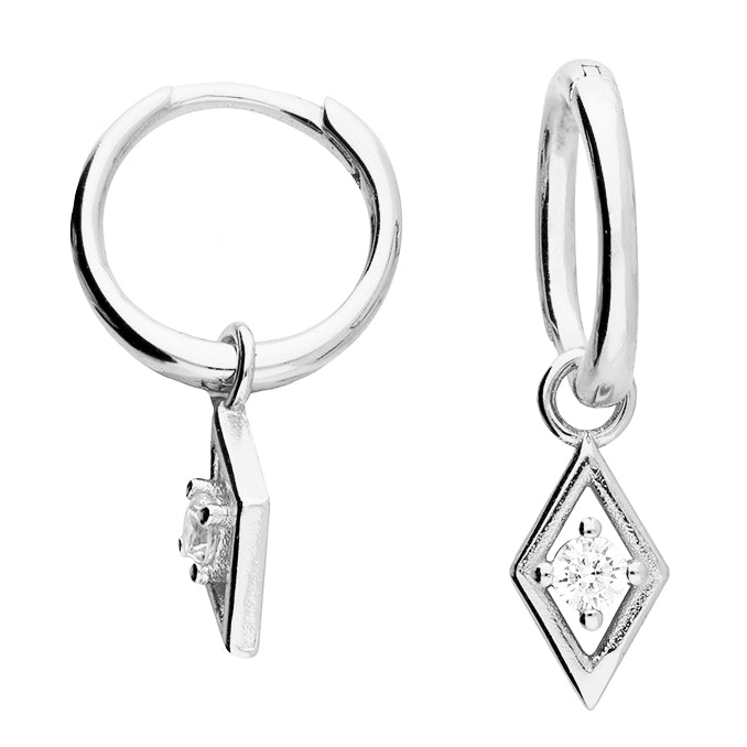 Silver CZ Kite Charm Huggie Hoop Earrings