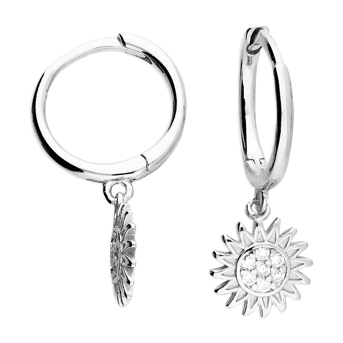 Silver CZ Sun Charm Huggie Hoop Earrings | 10mm