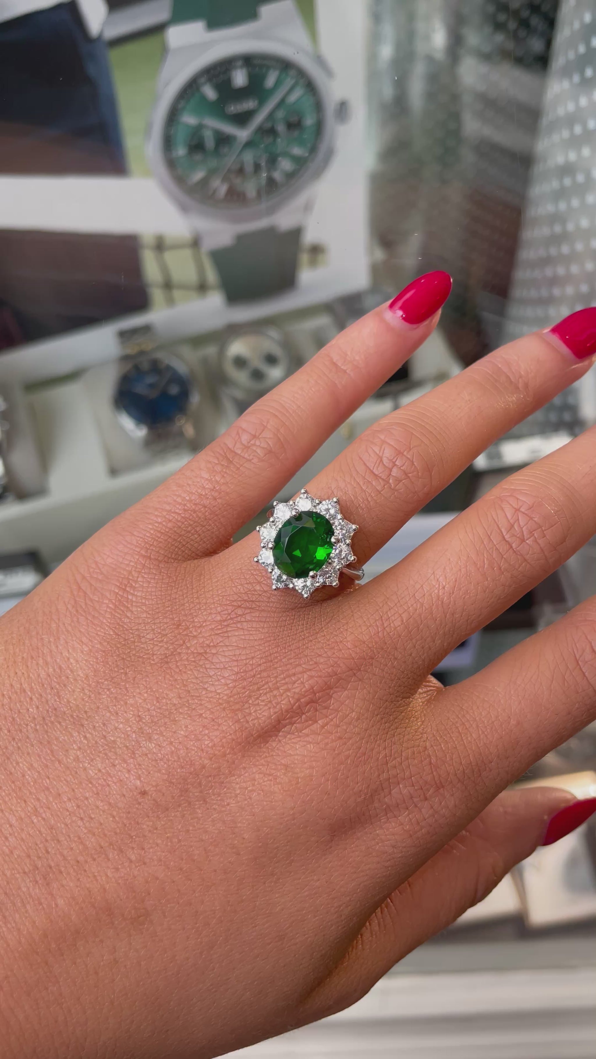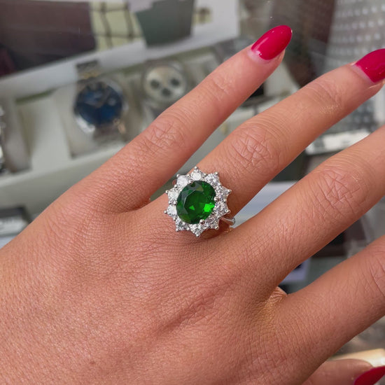 Silver Emerald Green Diana Ring