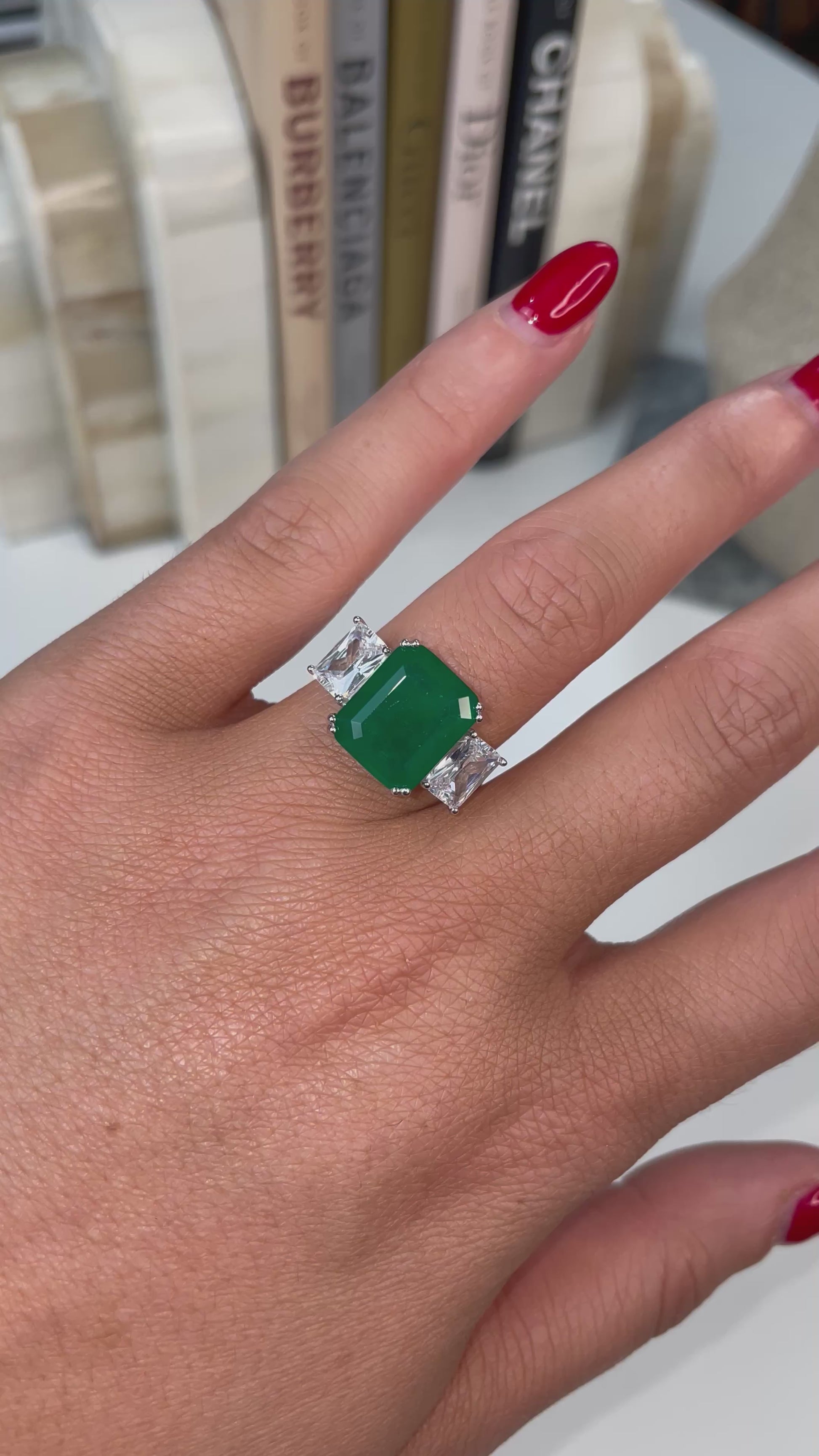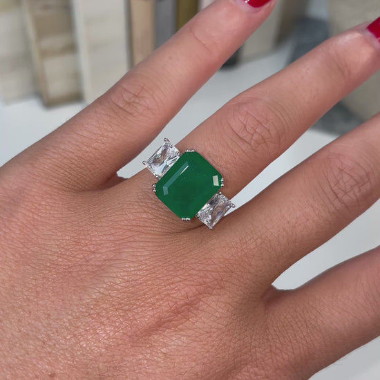 Silver Emerald Green Trilogy Cocktail Ring