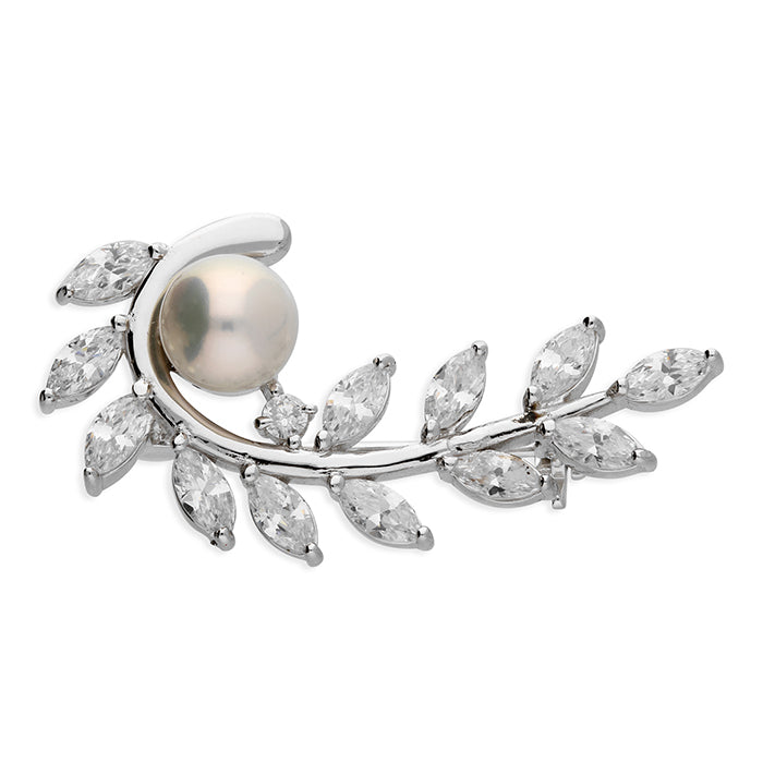 Silver Freshwater Pearl & CZ Brooch
