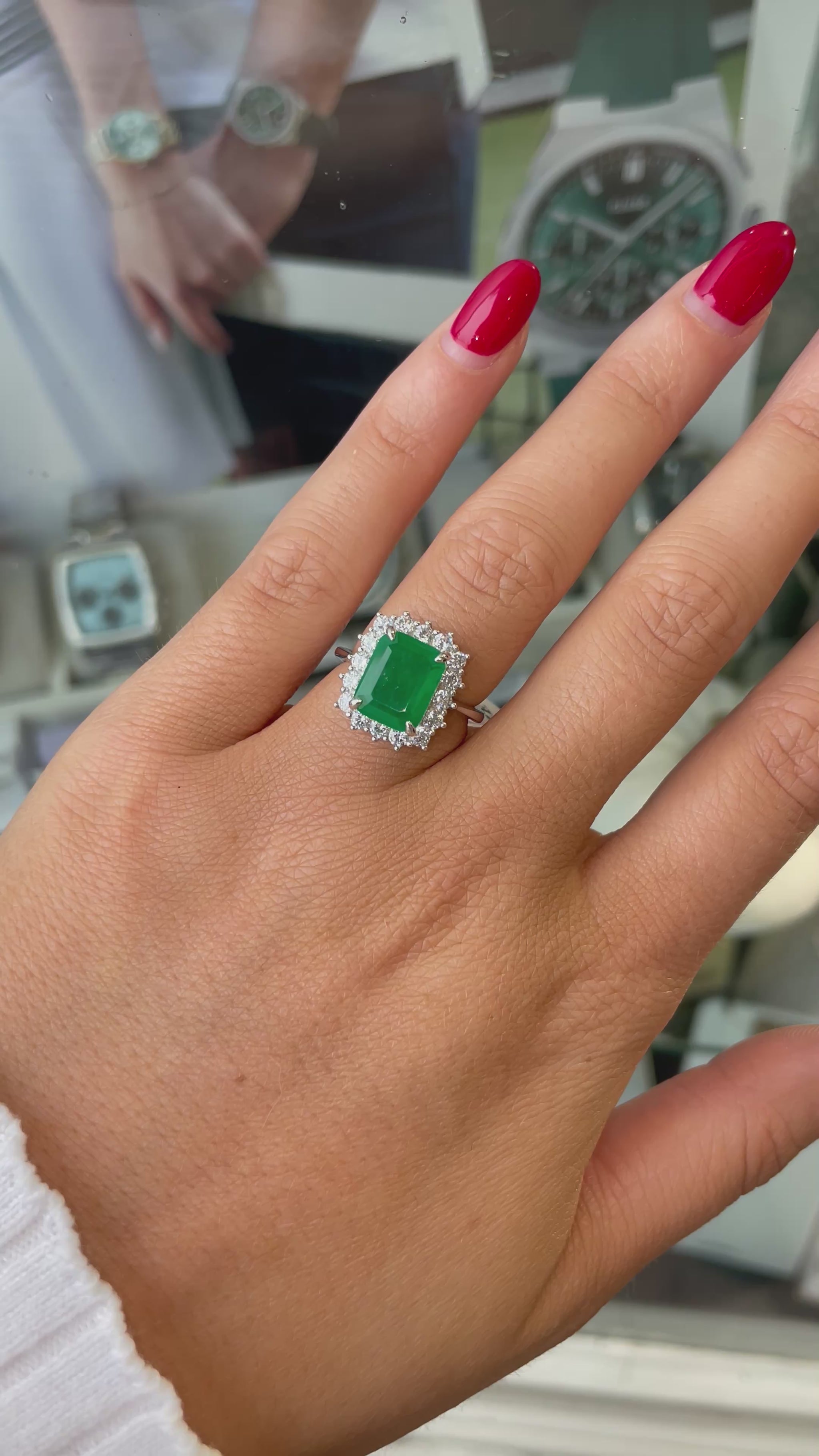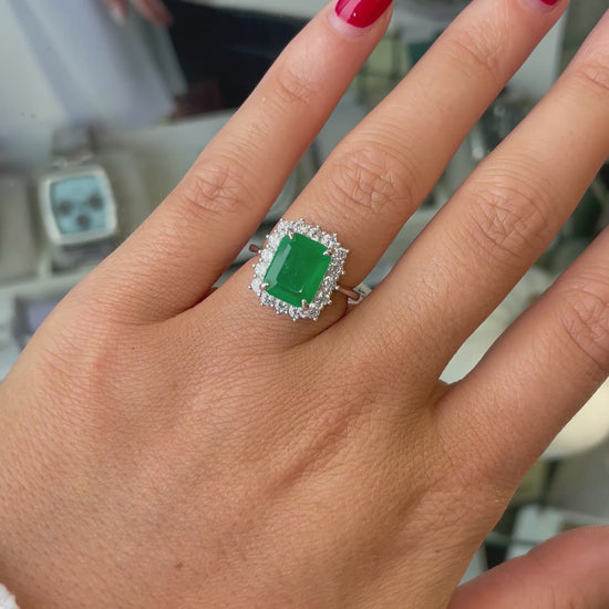 Silver Green CZ Emerald Cut Cluster Ring | 925 Silver