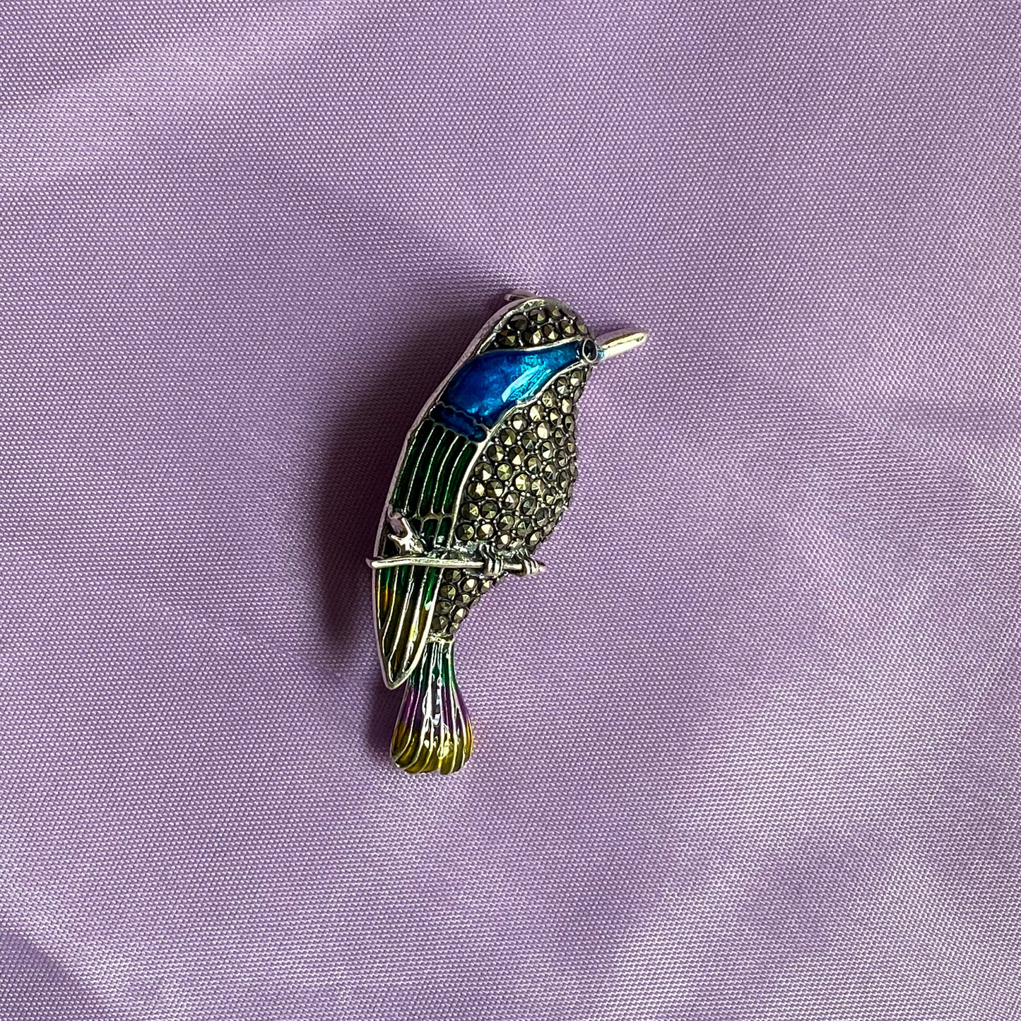 Silver Kingfisher Bird Marcasite & Enamel Brooch