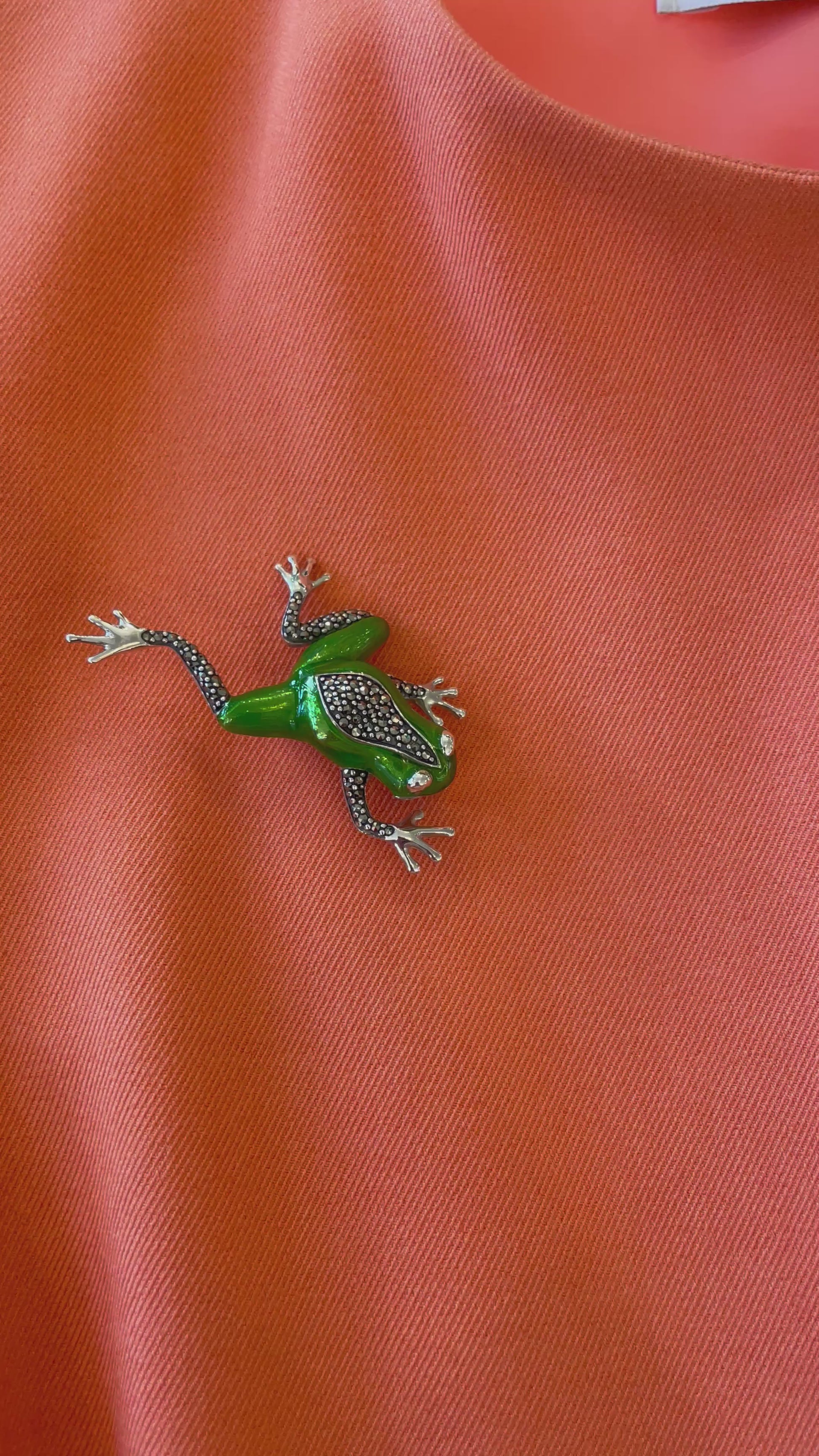 Silver Marcasite & Enamel Frog Brooch