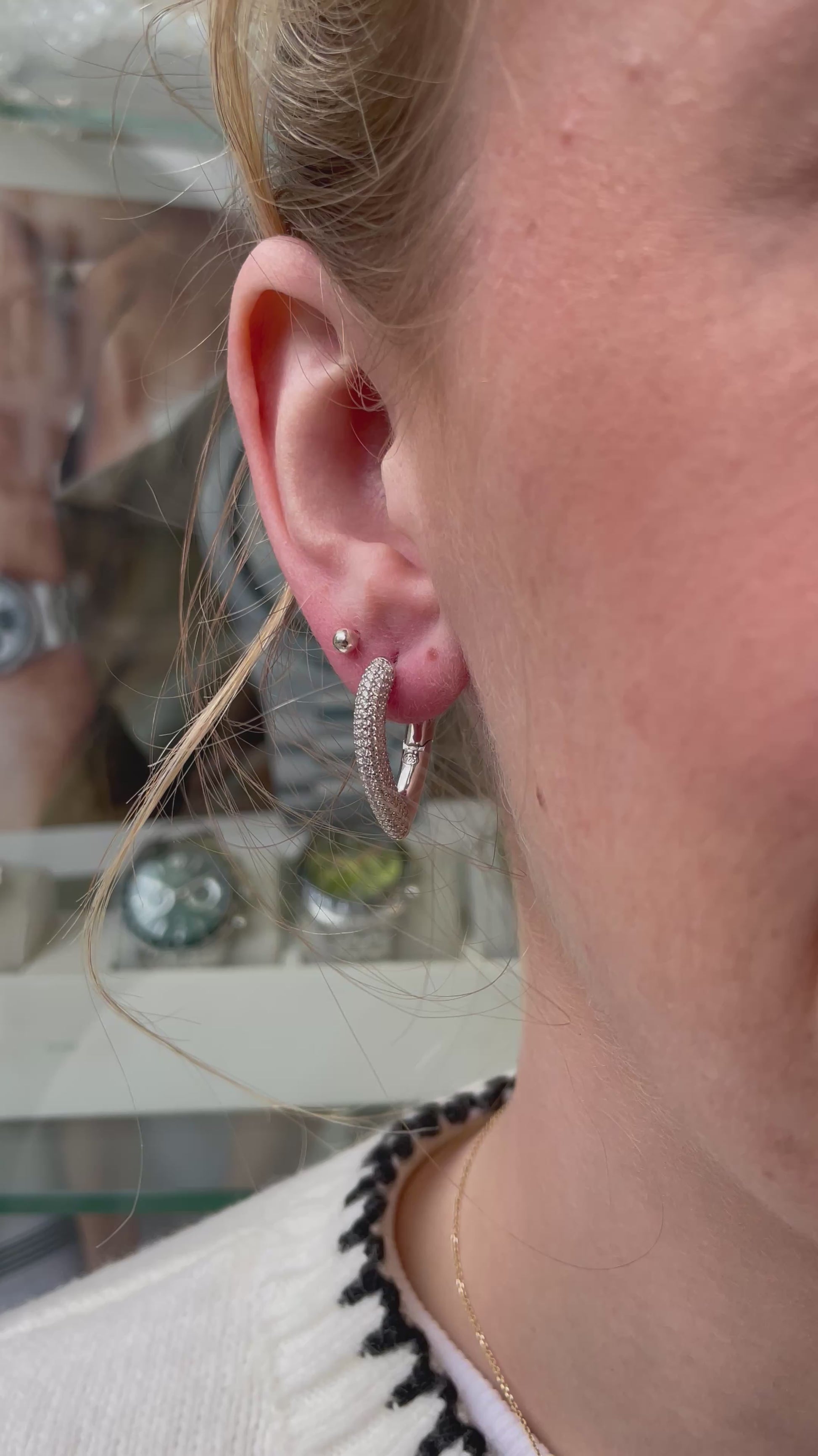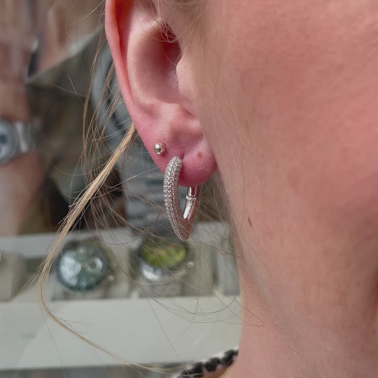 Silver Pave CZ Pointed Hoop Earrings | 925 Silver