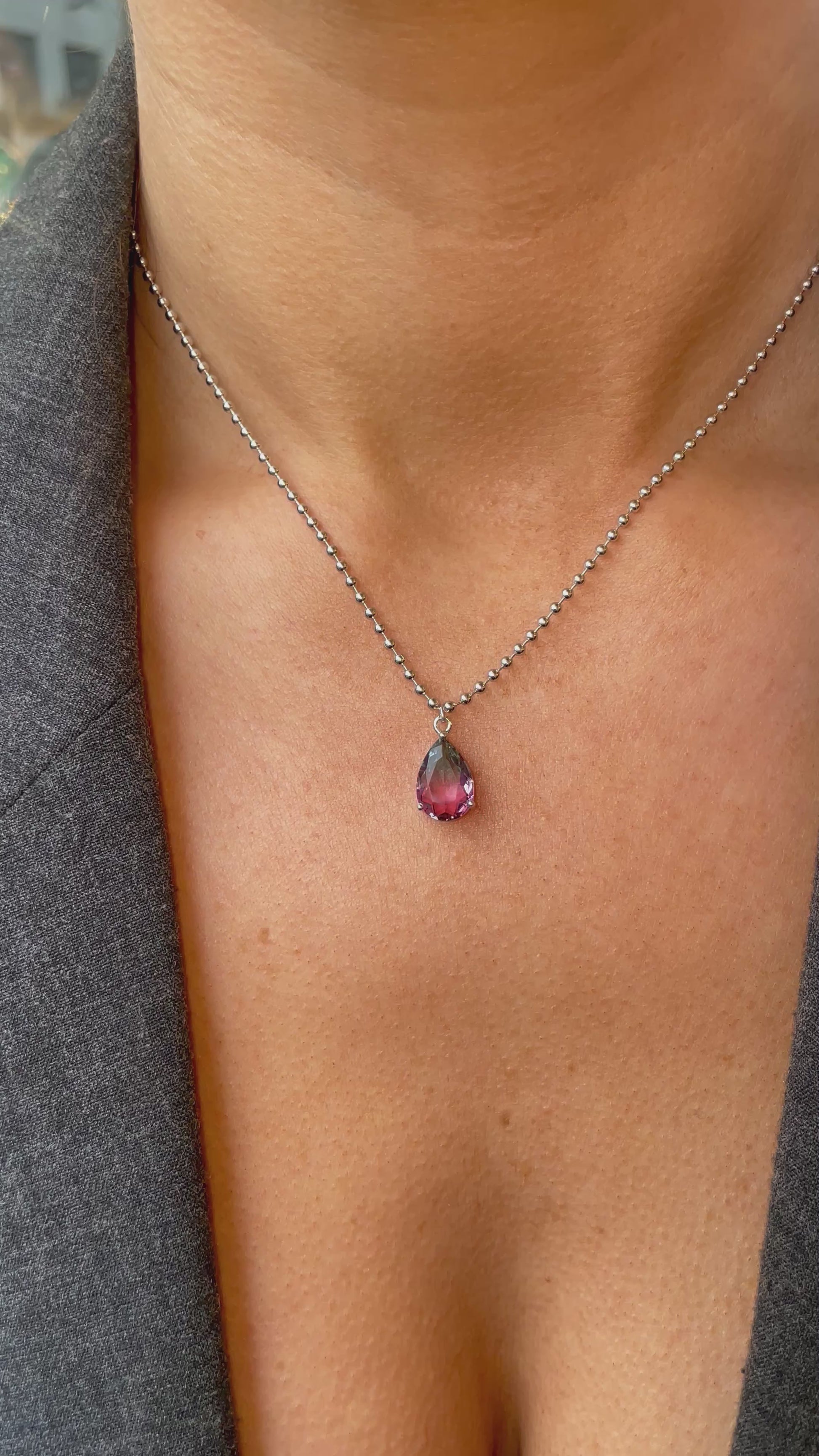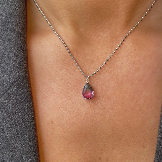 Silver Pear CZ Necklace | Mystic 40+5cm