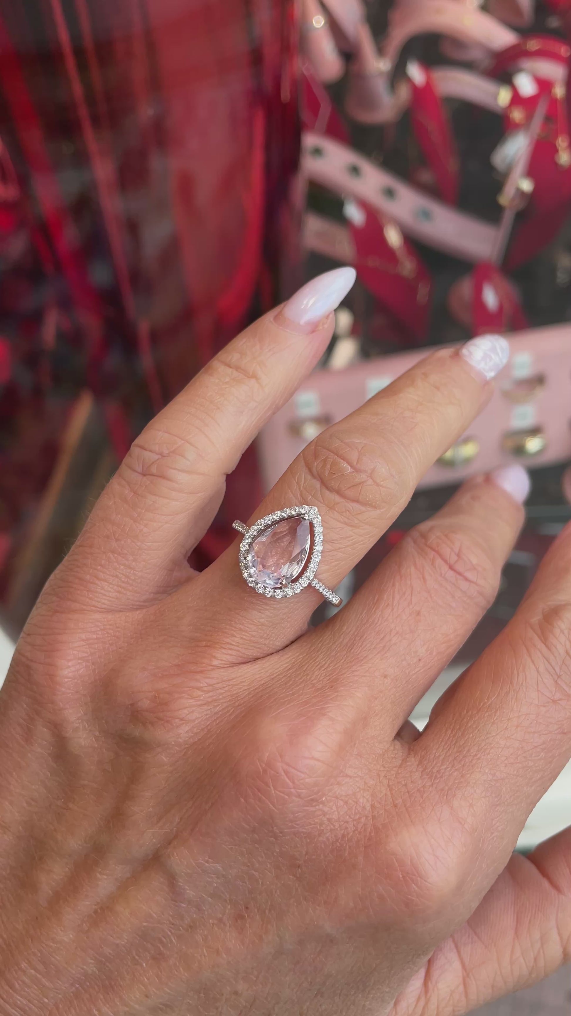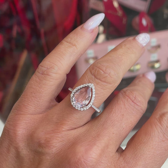 Silver Pear Halo Cluster Ring | Soft Pink | 925 Silver