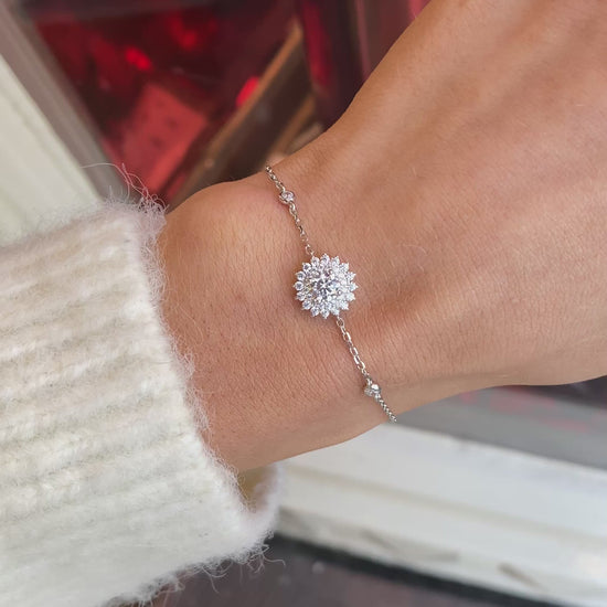 Silver Pretty CZ Flower Centre Bracelet | 16.5+2cm
