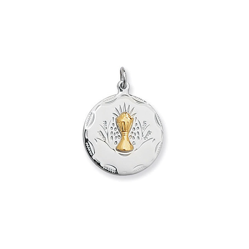 Silver Round Communion Medal On 16" Chain