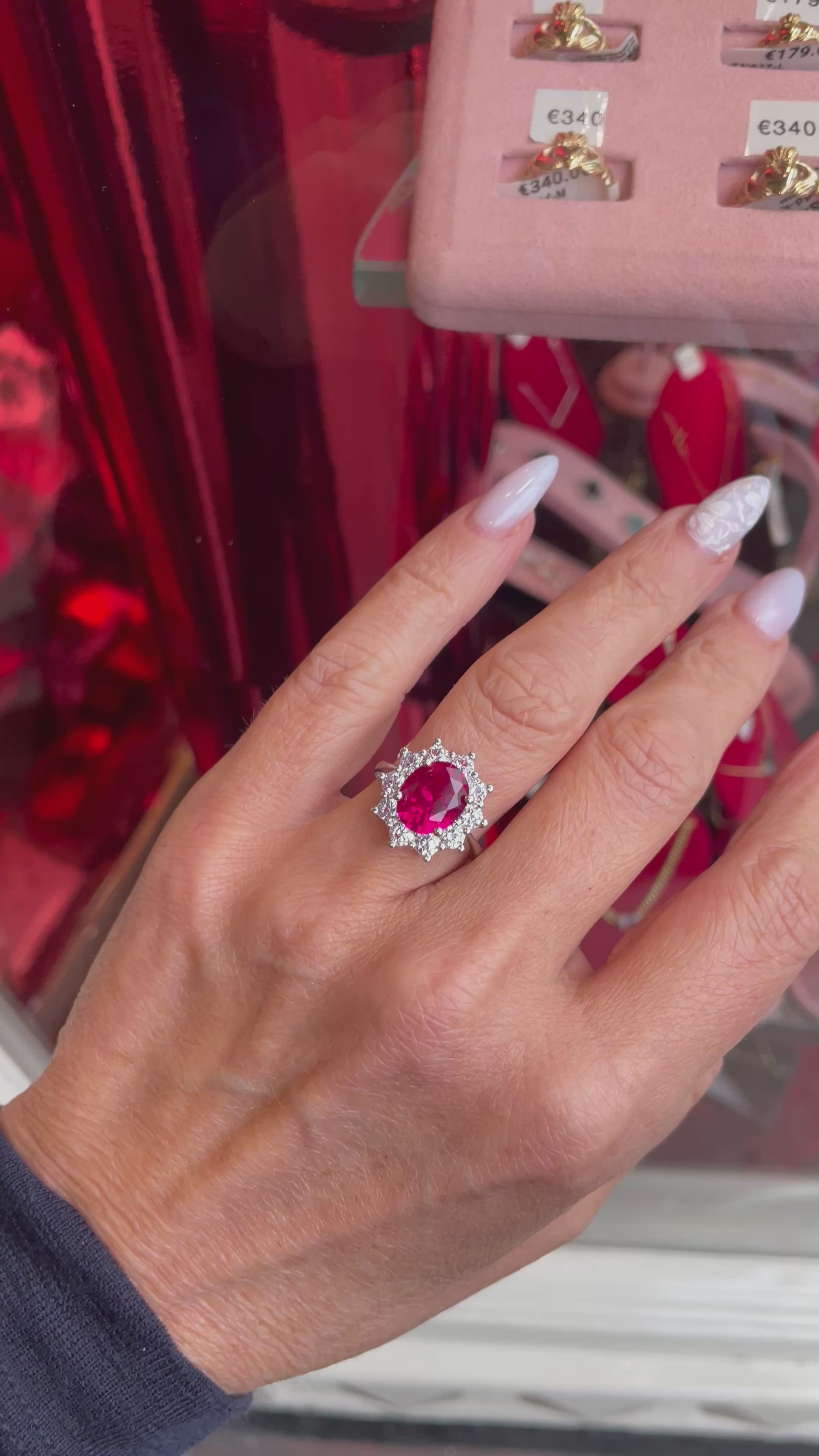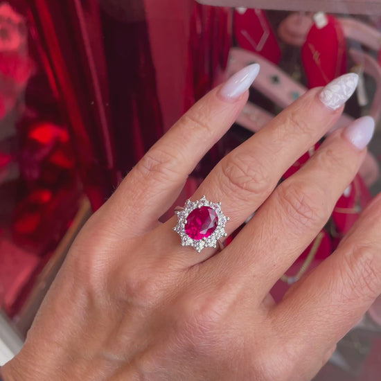 Silver Ruby Red Oval Statement Ring | 925 Silver |