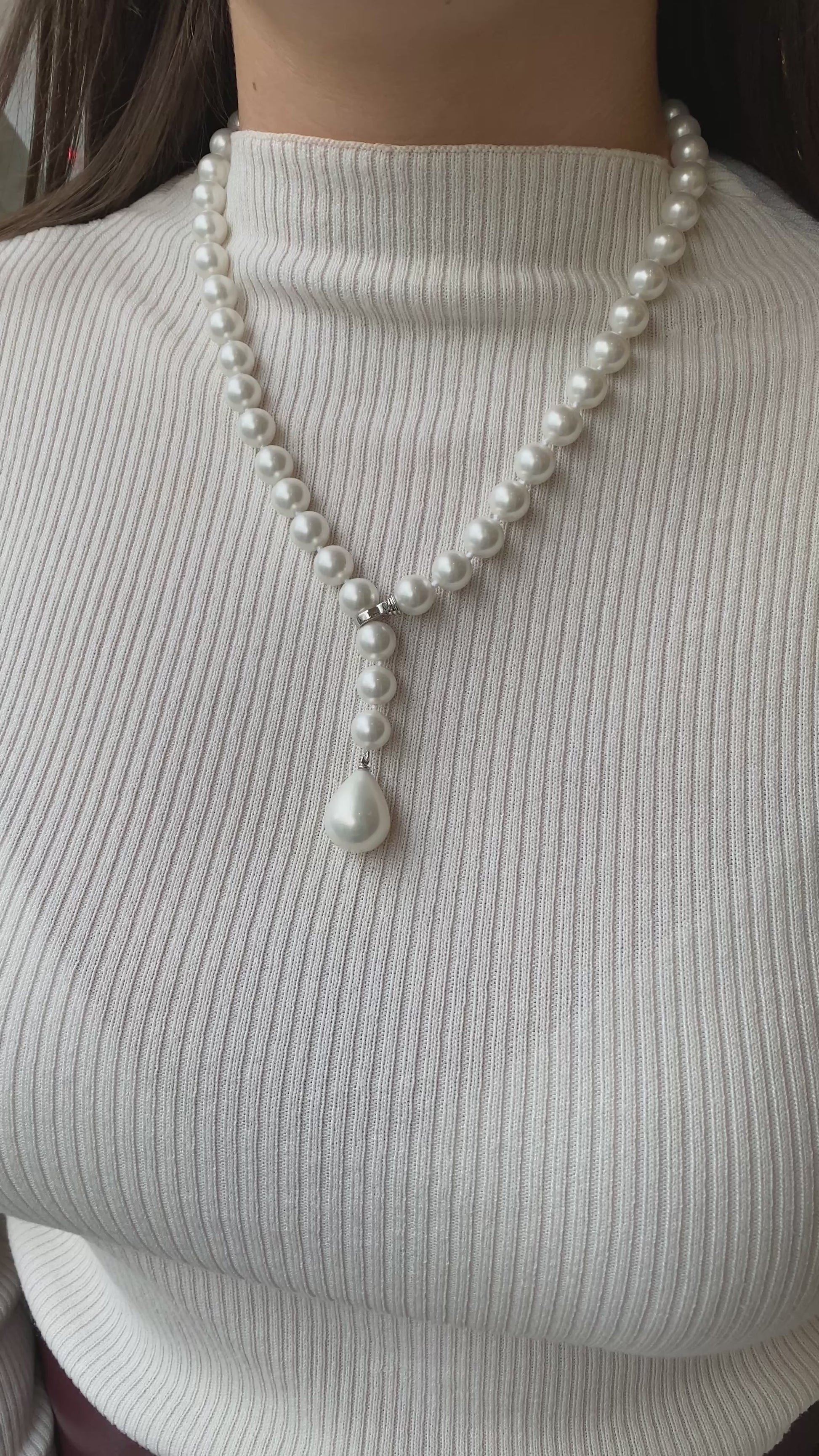 Silver Shell Pearl Lariat Necklace | 60cm | 925 Silver