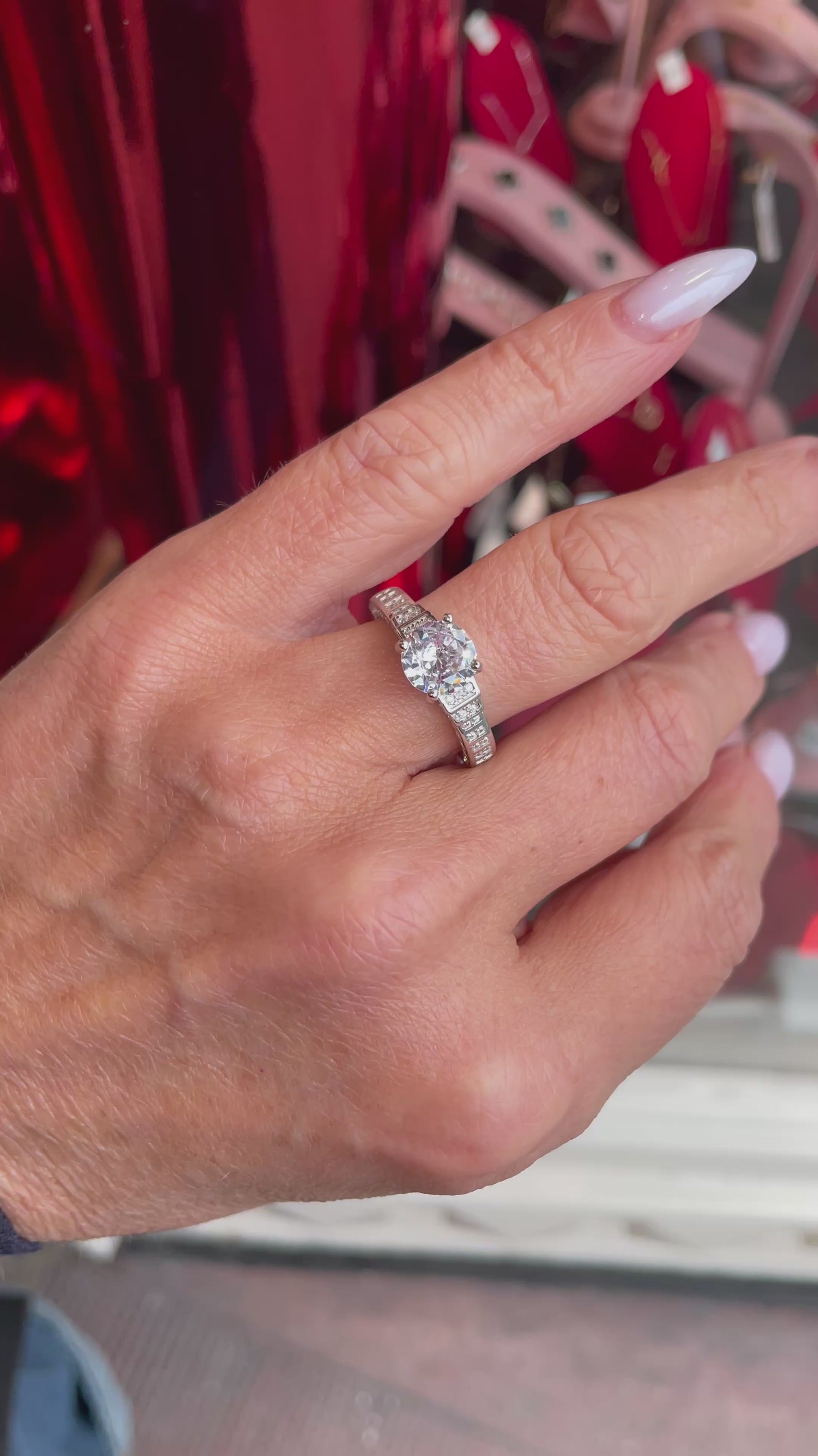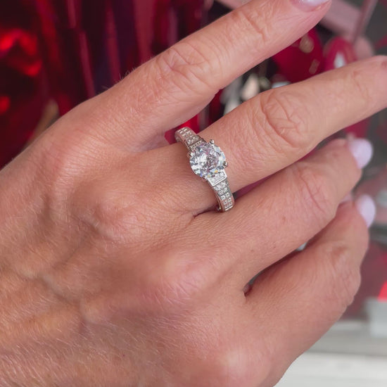 Silver Vintage Style CZ Stepped Solitaire Ring