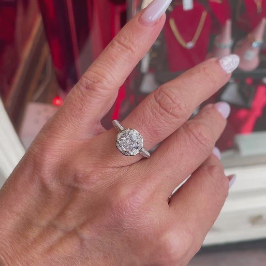Silver Vintage Style Halo CZ Solitaire Ring