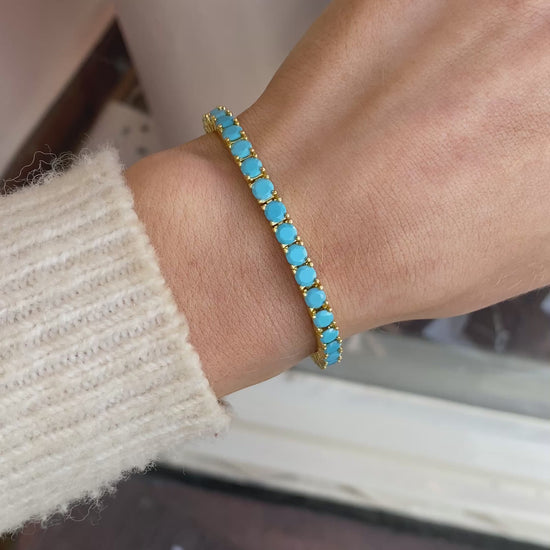 Sunshine 4mm Synthetic Turquoise Tennis Bracelet | 17+2cm | 925 Silver Gold Plated