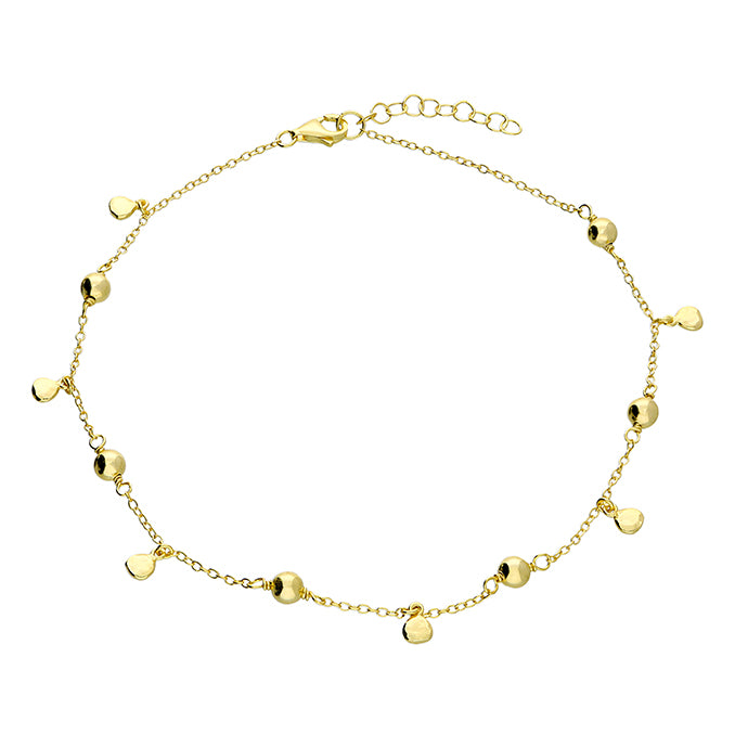 925 gold plated silver anklet with alternating beads and tiny round disc charms.