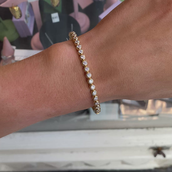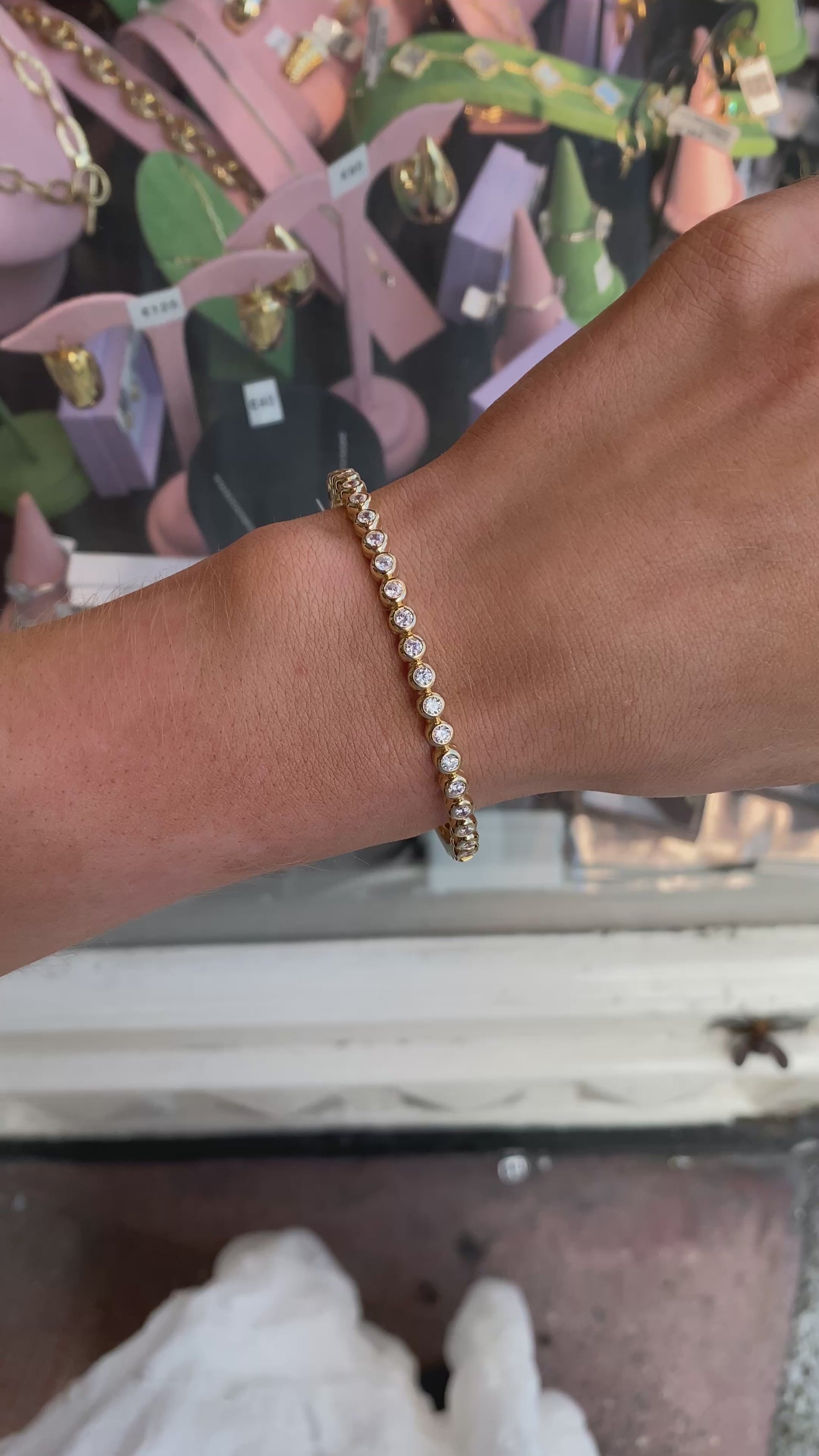 Sunshine Bezel Set CZ Bangle. Gold plated 925 silver.