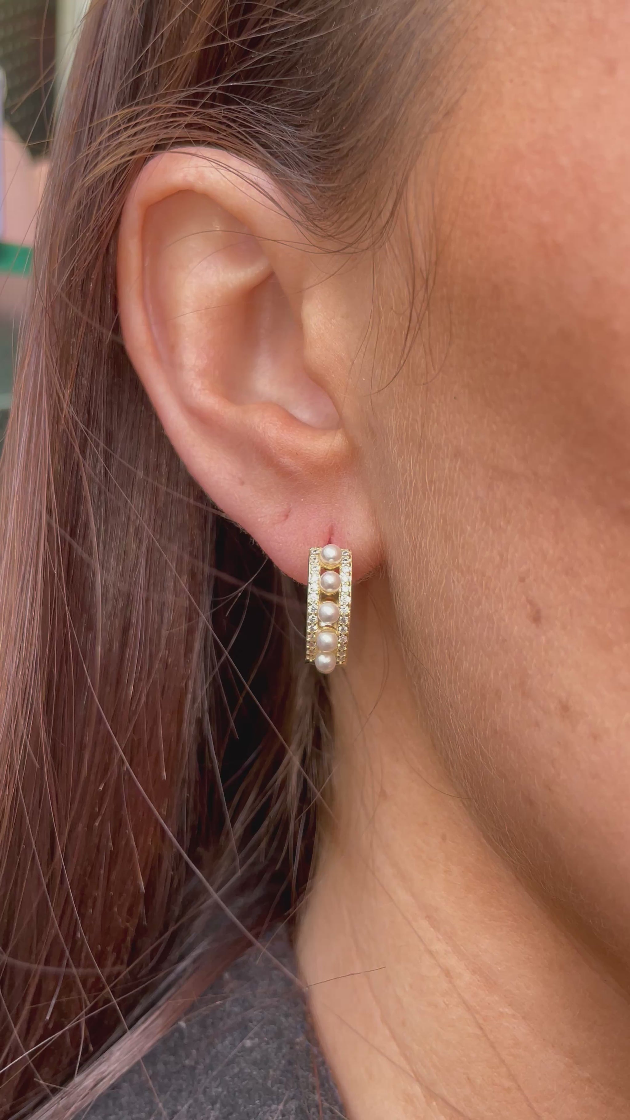 Sunshine CZ & Pearl Hoop Earrings | 925 Silver Gold Plated