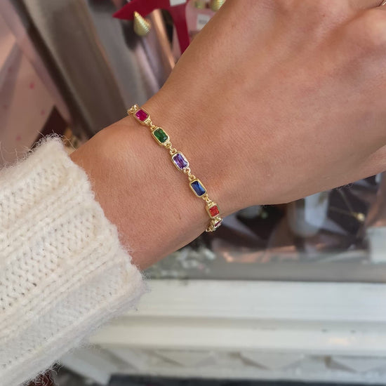 Sunshine CZ Tennis Bracelet | Multi Coloured Emerald Cut CZs | 925 Silver Gold Plated
