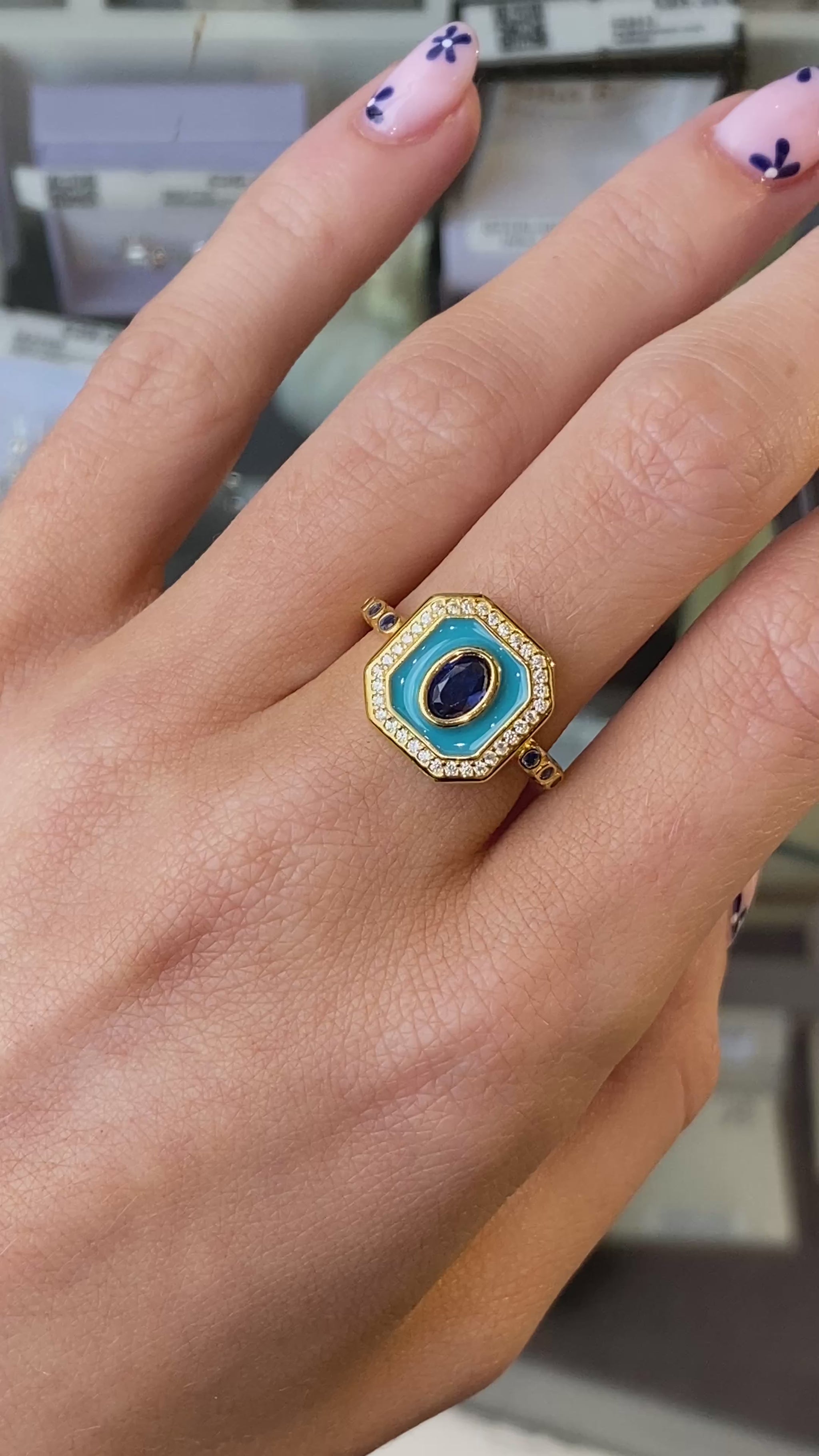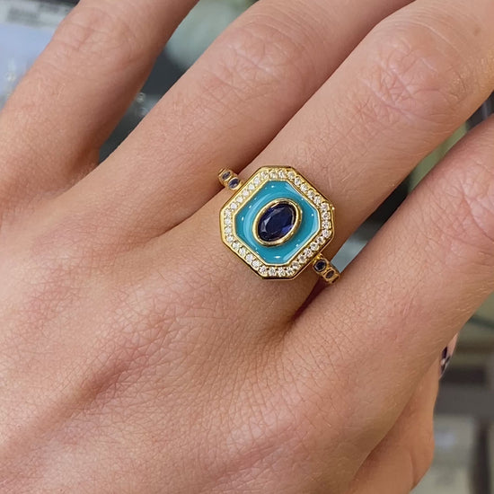Sunshine Enamel Sensation Ring | Teal & Sapphire