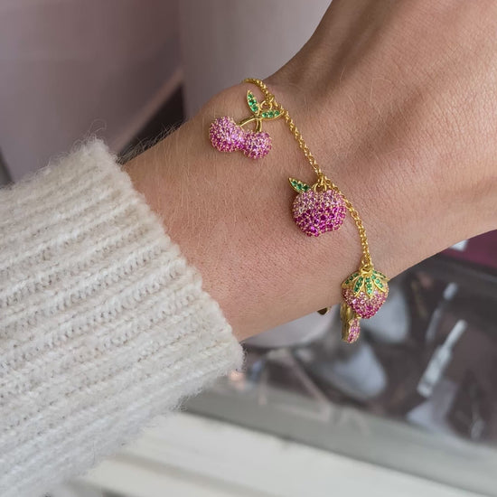 Sunshine Fruit Salad Charm Bracelet | 16+3cm | 925 Silver Gold Plated