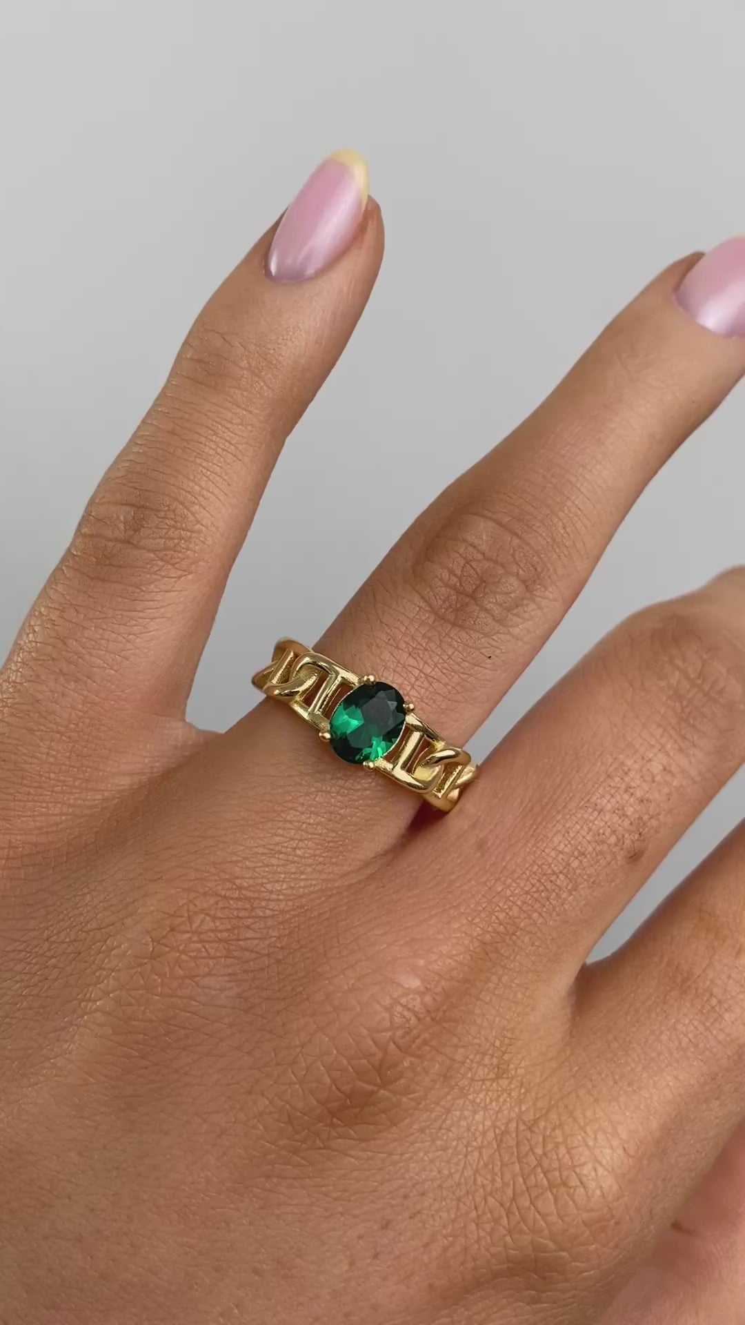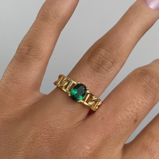 Sunshine Green CZ Chain Ring | 925 Silver Gold Plated