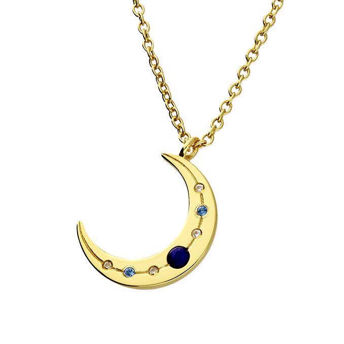 Sunshine Lapis Crescent Moon Necklace 42-45cm | Gold plated 925 silver, set with Lapis Lazuli and CZ.
