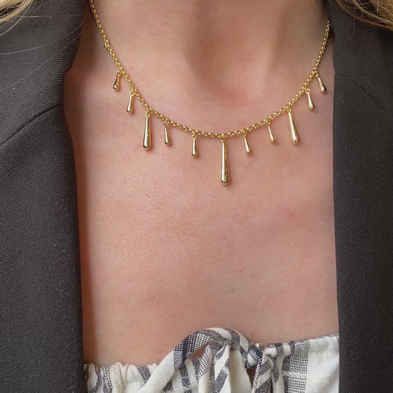 Sunshine Long Drops Fringe Necklace | 42cm | 925 Silver Gold Plated
