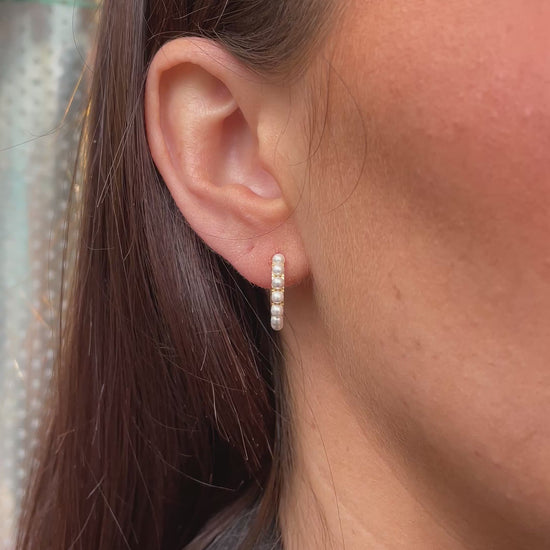 Sunshine Pearl Huggie Hoop Earrings | 925 Silver Gold Plated