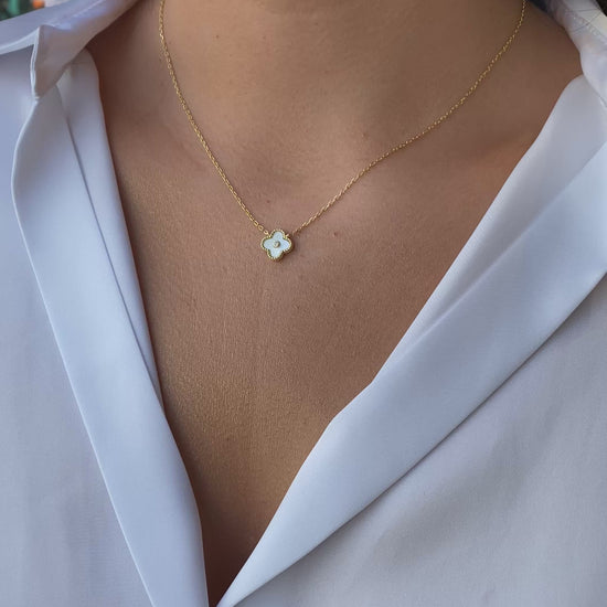Sunshine Quatrefoil Pendant Necklace | Mother Of Pearl & CZ